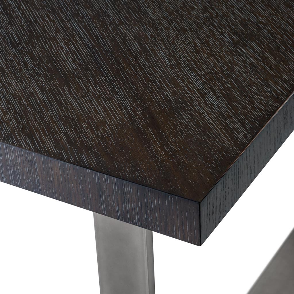 Обеденный стол Dining Table Borghese на основании из металла цвета черный никель. Столешница выполнена из дерева коричневого цвета.