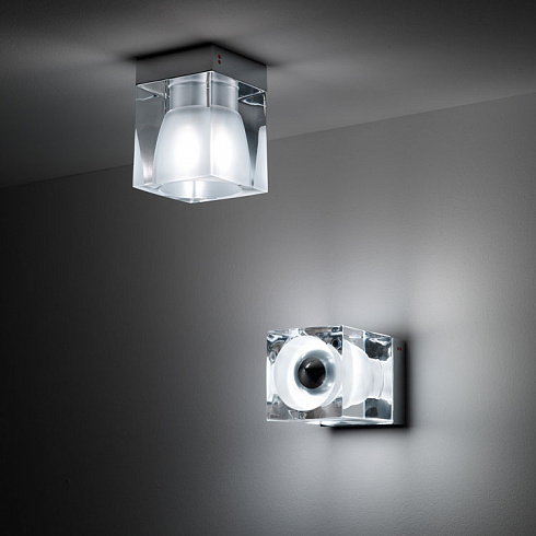 Настенный или потолочный светильник Cubetto - Куб. Квадратный рассеиватель из черного хрусталя. Металлическое крепление из блестящего хрома. Дизайн Pamio. Арт. D28G0202