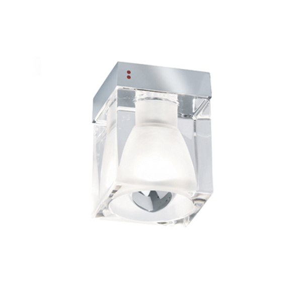 Настенный или потолочный светильник Cubetto. Квадратный рассеиватель из хрусталя (24% окиси свинца), внутренняя часть — пескоструйная обработка. Металлическое крепление из блестящего хрома. Дизайн Pamio. Арт. D28G0100
