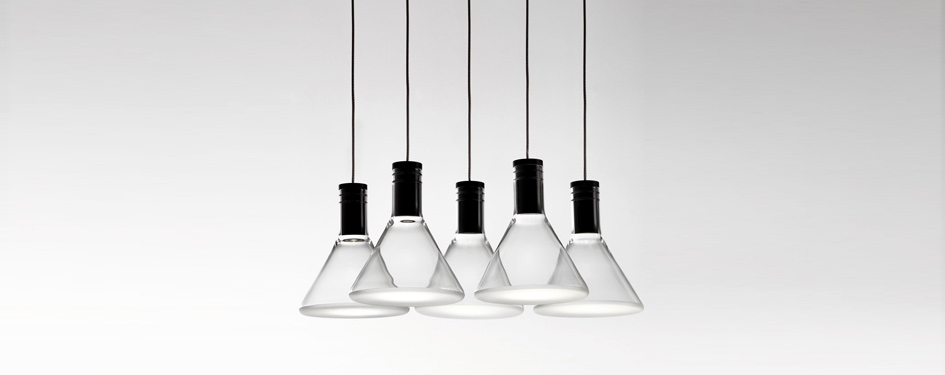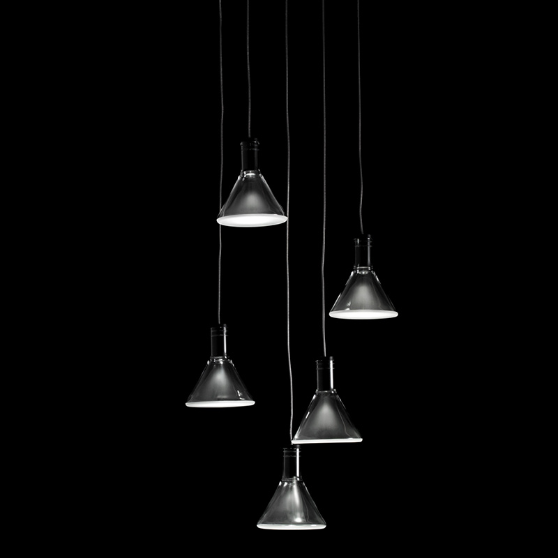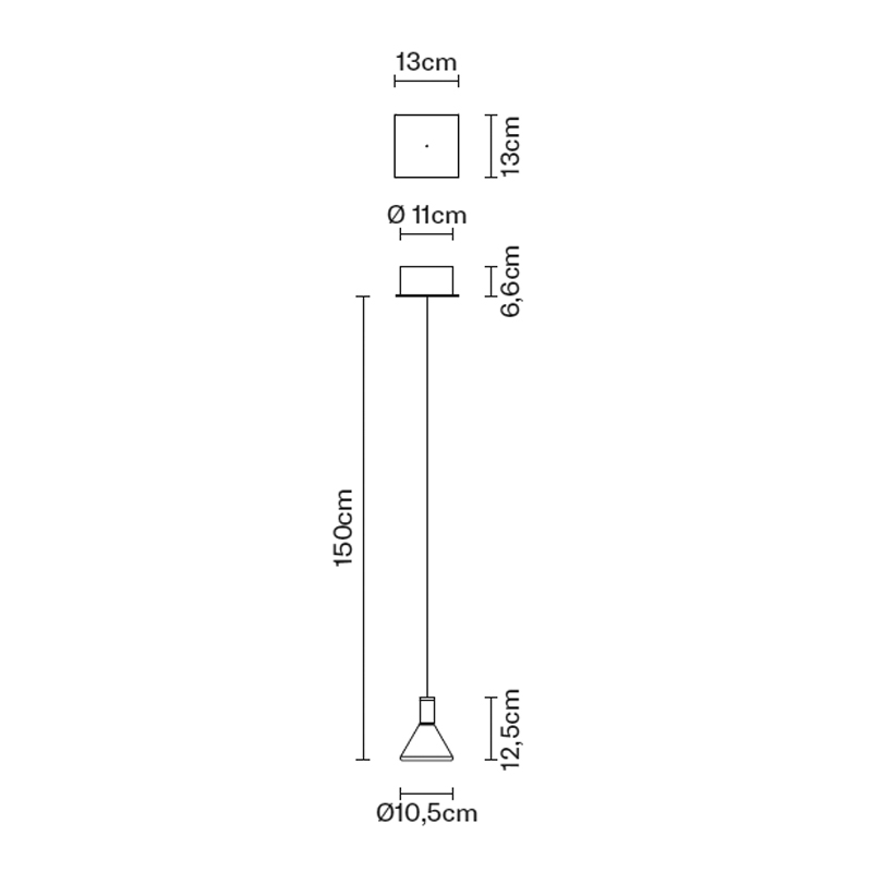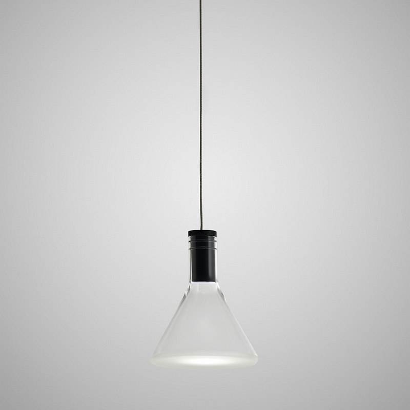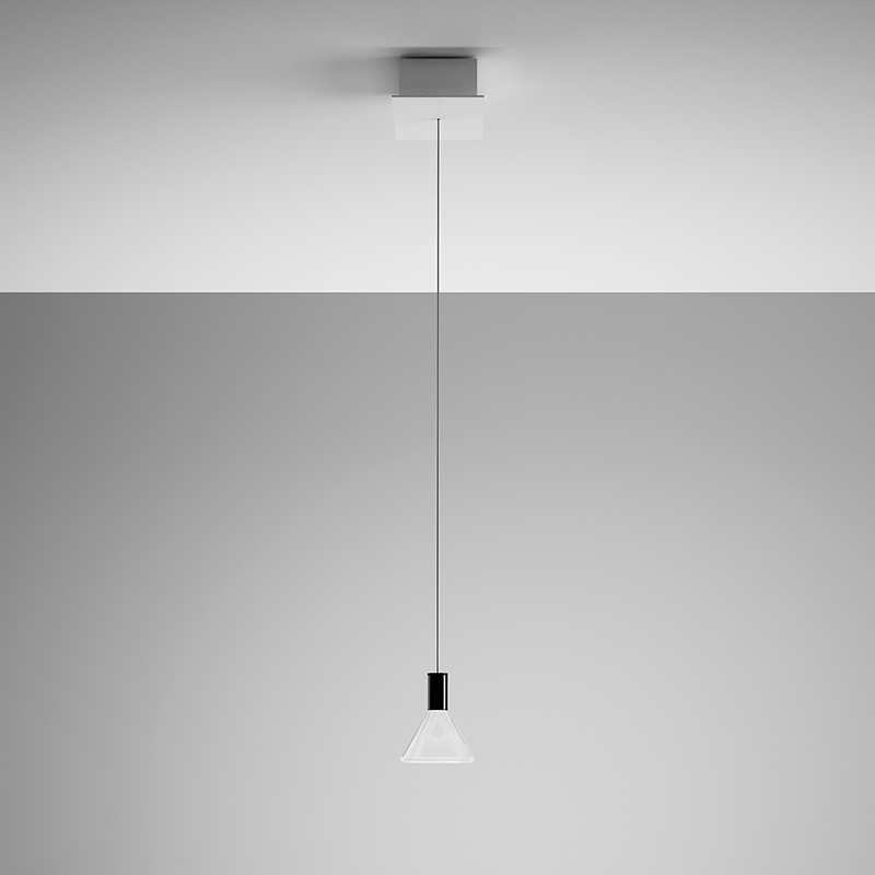 Подвесной светильник Multispot Polair на квадратной металлической арматуре белого цвета. Плафон выполнен из прозрачного стекла в виде конической колбы с "пробкой" из алюминия черного цвета. Высота светильника регулируется до 150.