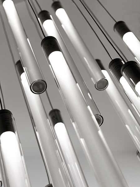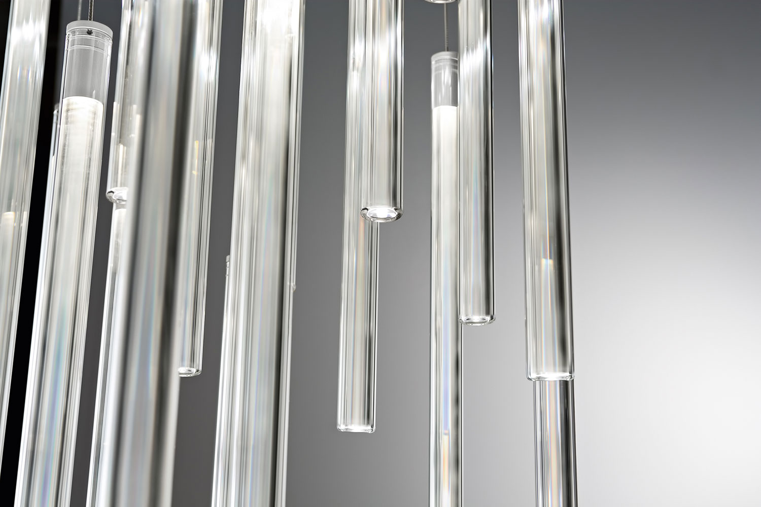 Подвесной светильник Multispot Tooby без потолочного крепления. Плафон выполнен из прозрачного стекла в виде длинной цилиндрической колбы с "пробкой" из алюминия серого цвета. Высота подвеса регулируется до 250. Светильник комплектуется одиночным потолочным креплением или потолочной чашей для подключения нескольких подвесов.