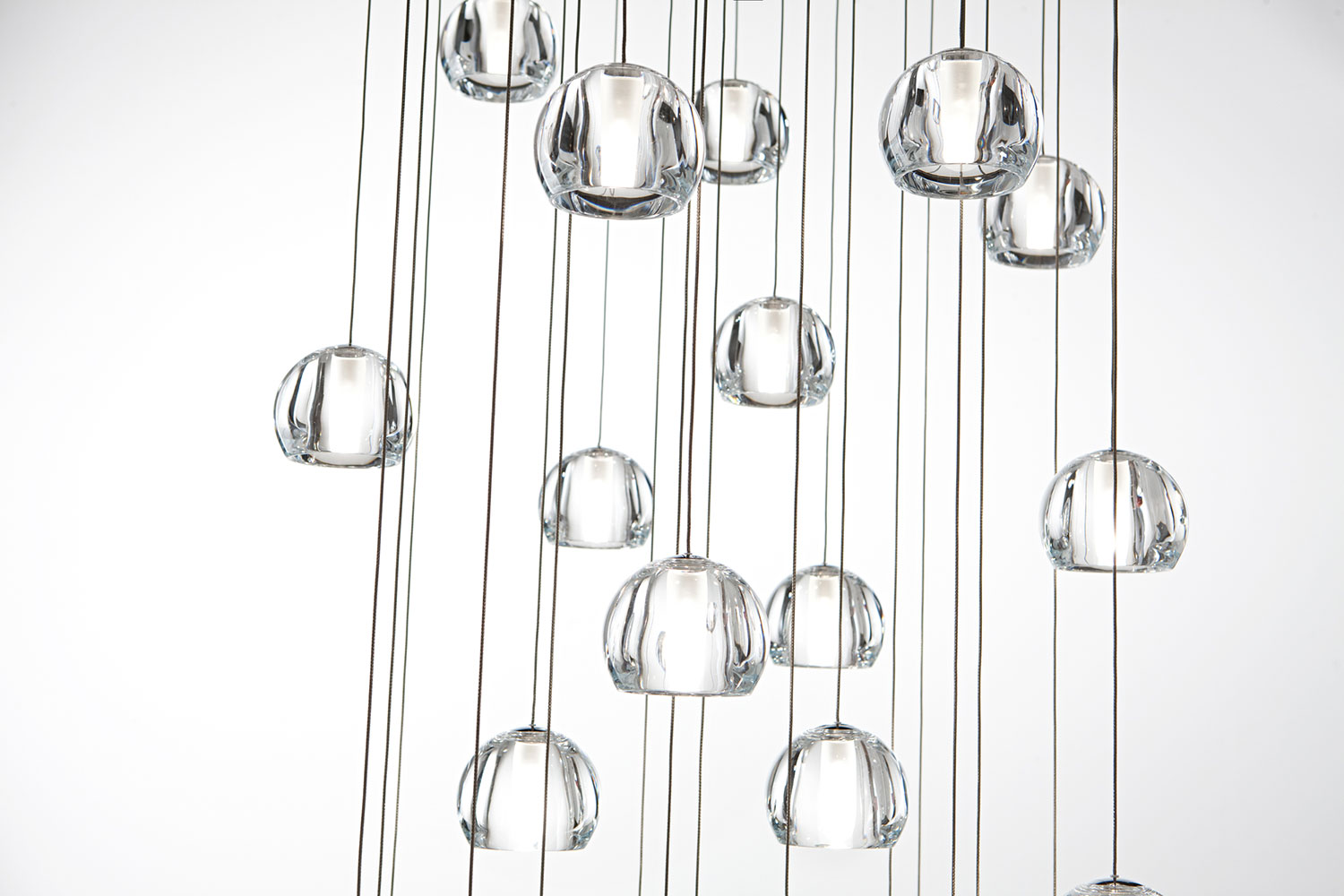 Подвесной светильник Multispot Beluga без потолочного крепления. Плафон выполнен из прозрачного хрусталя. Высота подвеса регулируется до 150. Светильник можно скомплектовать одиночным потолочным креплением F32M0201 или потолочной чашей для подключения нескольких подвесов F32M0401.