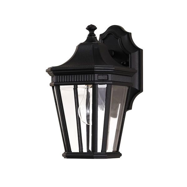 Настенный фонарь Elstead Lighting FE-COTSLN2-S-BK из коллекции Cotswold Lane. Отличительной чертой светильника является декоративный молдинг над панелями из прозрачного стекла с фацетом. Эта деталь усиливает более традиционную, строгую эстетику, дизайн которой вдохновлен старинными газовыми фонарями. Основание выполнено в цвете - Черный. Можно использовать при уличном освещении, степень защиты IP44.
