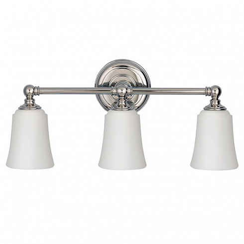 Бра Feiss FE-HUGOLAKE3BATH из коллекции Huguenot Lake. Яркая деталь светильника, узор на розетке, напоминающий круги отброшенного в озеро камня. Впечатление усиливается благодаря отделке «хром», действительно похожей на серебристо-зеркальную водную гладь. Простота и изящество плафонов изготовленных из матово-белого стекла и акцентированном небольшим металлическим шаром. Лаконичный и выверенный дизайн притягивает взгляд. Простота стиля компенсируется красотой молочно-белого непрозрачного стекла с чуть выпуклыми гранями. Можно использовать при освещении ванной комнаты, степень защиты IP44.