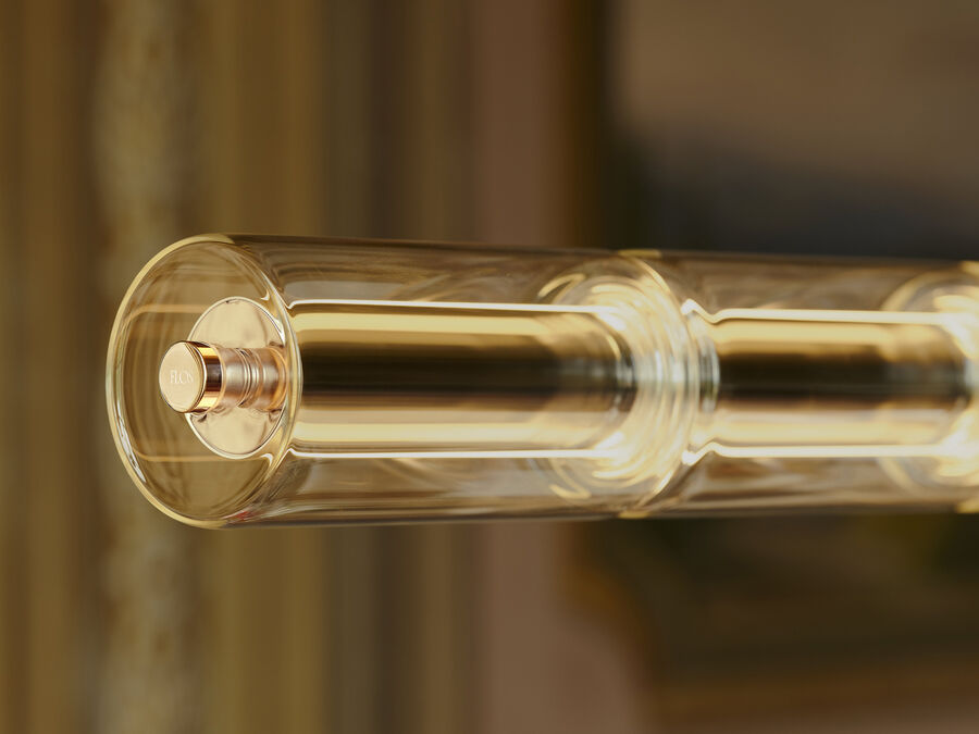 Подвесной светильник Flos Luce Cilindrica S1 состоит из соединенных между собой стеклянных модулей с подвесным силовым кабелем длиной 2,70 м. Горизонтальный корпус из полированного экструдированного алюминия с двумя светодиодными лентами для излучения света вверх и вниз. Встроенный сенсорный диммер позволяет независимо регулировать световой поток. Корпус заключен в ряд цилиндров из боросиликатного стекла, разделенных традиционными распорками. Может устанавливаться в несколько параллельных рядов.