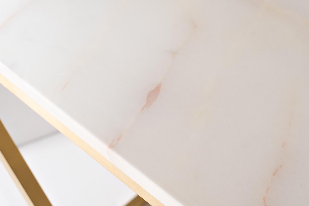 47ED-CST026GOLD Консоль Bianco Namibia 120*40*78см. Материал: основание - нерж.сталь, цвет золото матовое; столешница - иск.мрамор белый матовый.