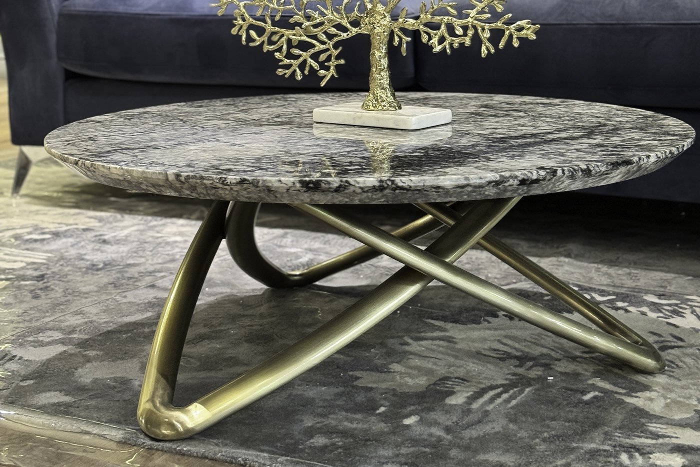 57EL-STOL/ZH-790A Стол журнальный натур. серый мрамор d95*36см. Материал: нержавеющая сталь, мрамор.