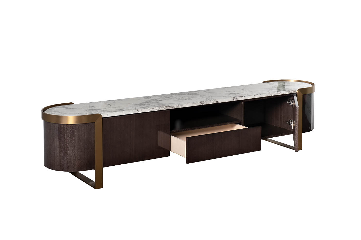 58DB-TV20047 Тумба под телевизор Sevilla 220*42*48см. Материал: МДФ, шпон, нерж.сталь, столешница под мрамор (иск.камень либо МДФ с пленкой ПВХ).