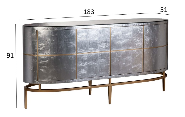 ART-2705-S Комод "Futuro" серебристый 183*51*91см. Материал: МДФ,металл, стекло.