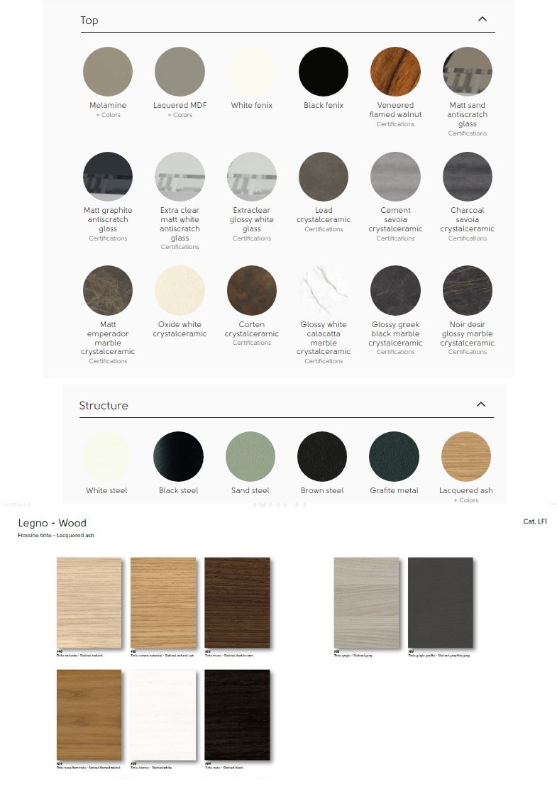 На заказ доступны разные цвета и отделки основания и столешницы.