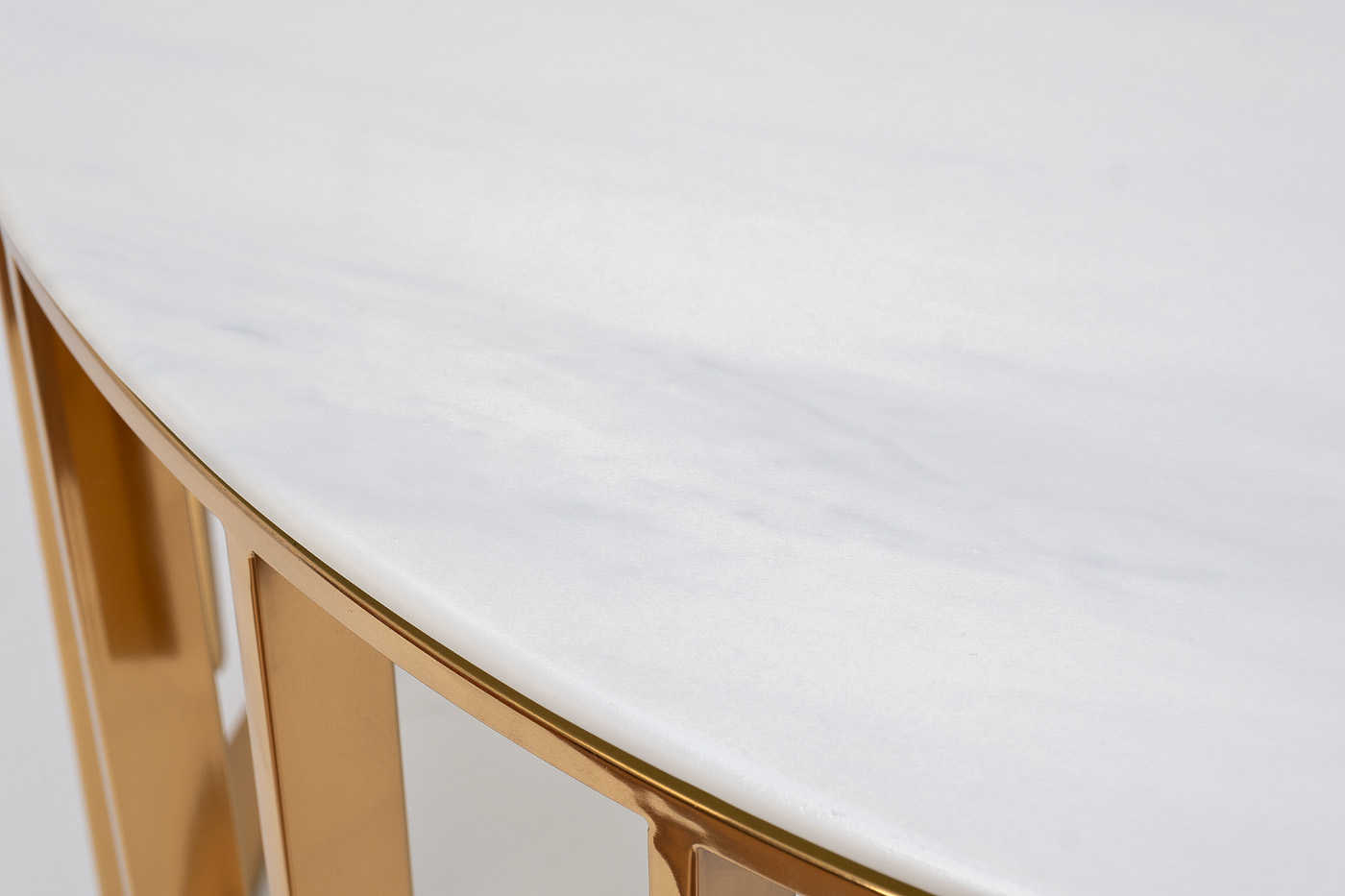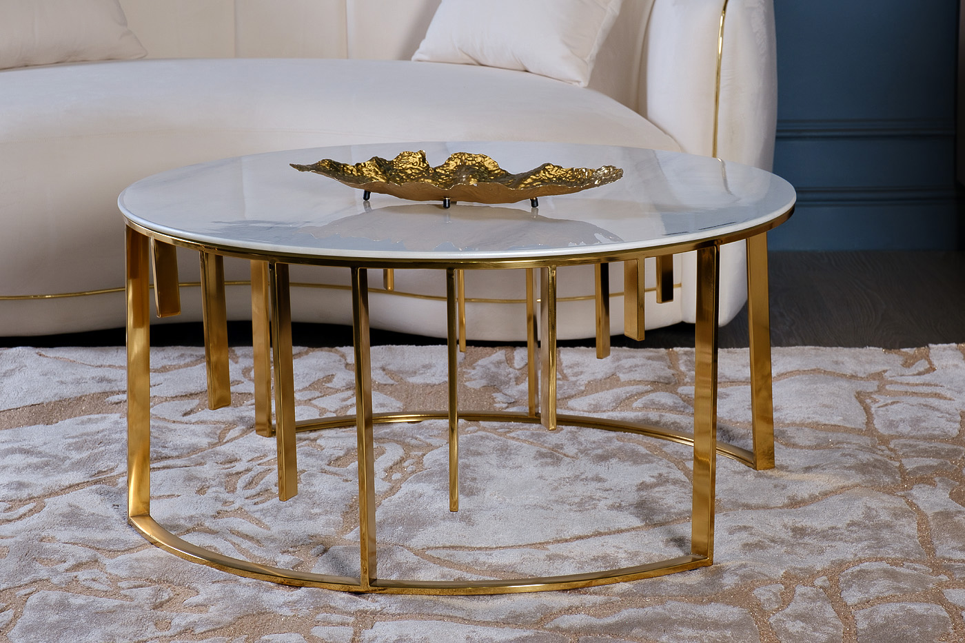 GY-10006 Стол журнальный мрам.стекло/золото d90*43см. Материал: нержавеющая сталь, стекло.
