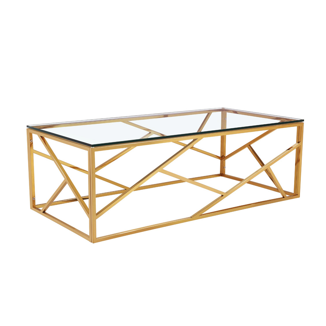 GY-CT2051214GOLD Стол журнальный 40*60*120. Материал: Столешница - стекло, основание - нержавеющая сталь золотого цвета.
