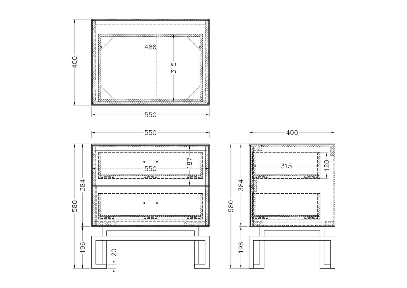 KFG059 Тумба черная 2 ящика 55*40*58см. Материал: зеркало черного цвета, нерж. сталь.