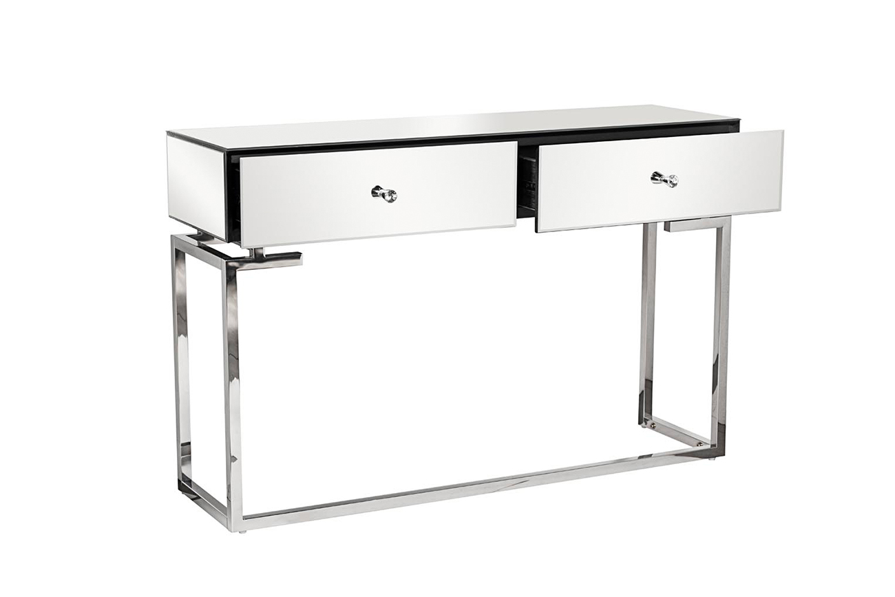 KFG075 Консоль зеркальная с 2-мя ящиками 120*35*77см. Материал: Зеркало, МДФ, каркас - нерж. сталь цвет хром блестящий.