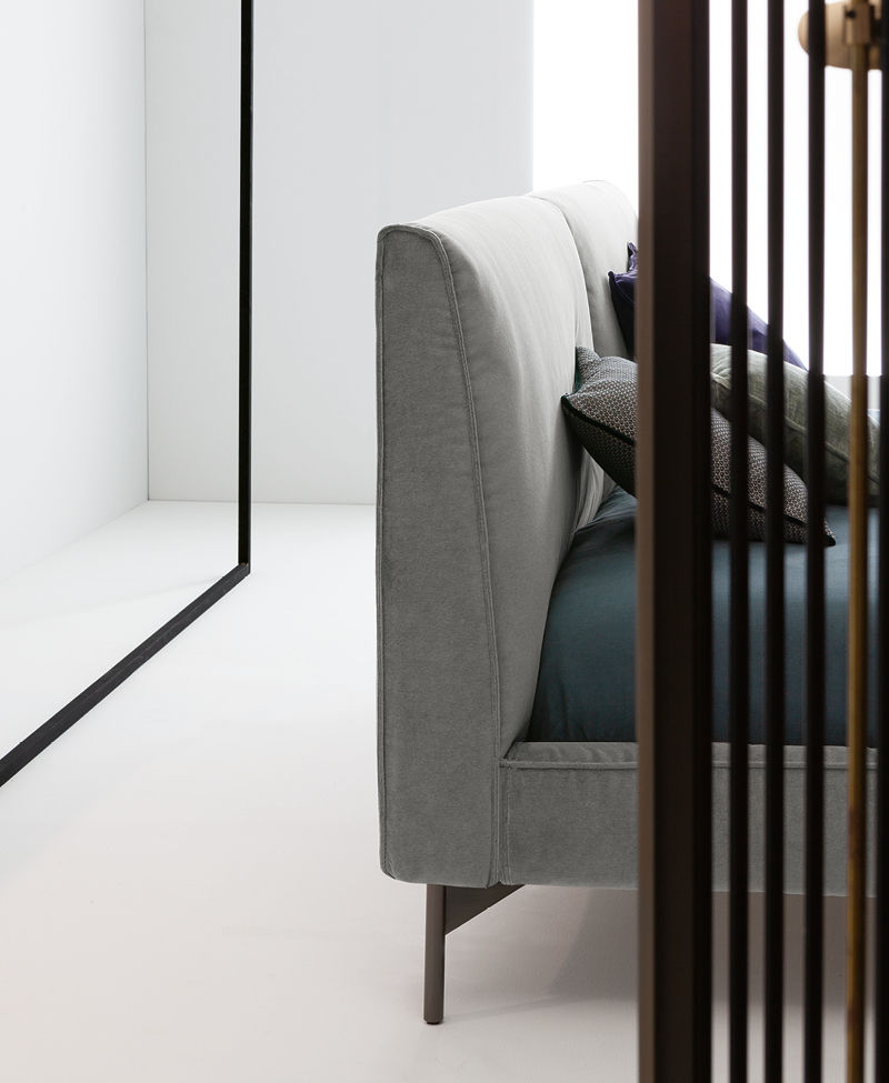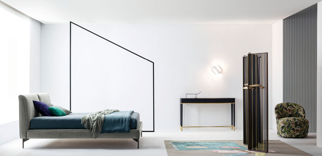 Гармония пропорций и элегантность контуров делают Ada привлекательной и неповторимой: взгляд задерживается на отличительных деталях, таких как заклепанный край на изголовье и профили каркаса кровати. Современный дизайн, креативный и рациональный. Дизайн: R&D Twils.