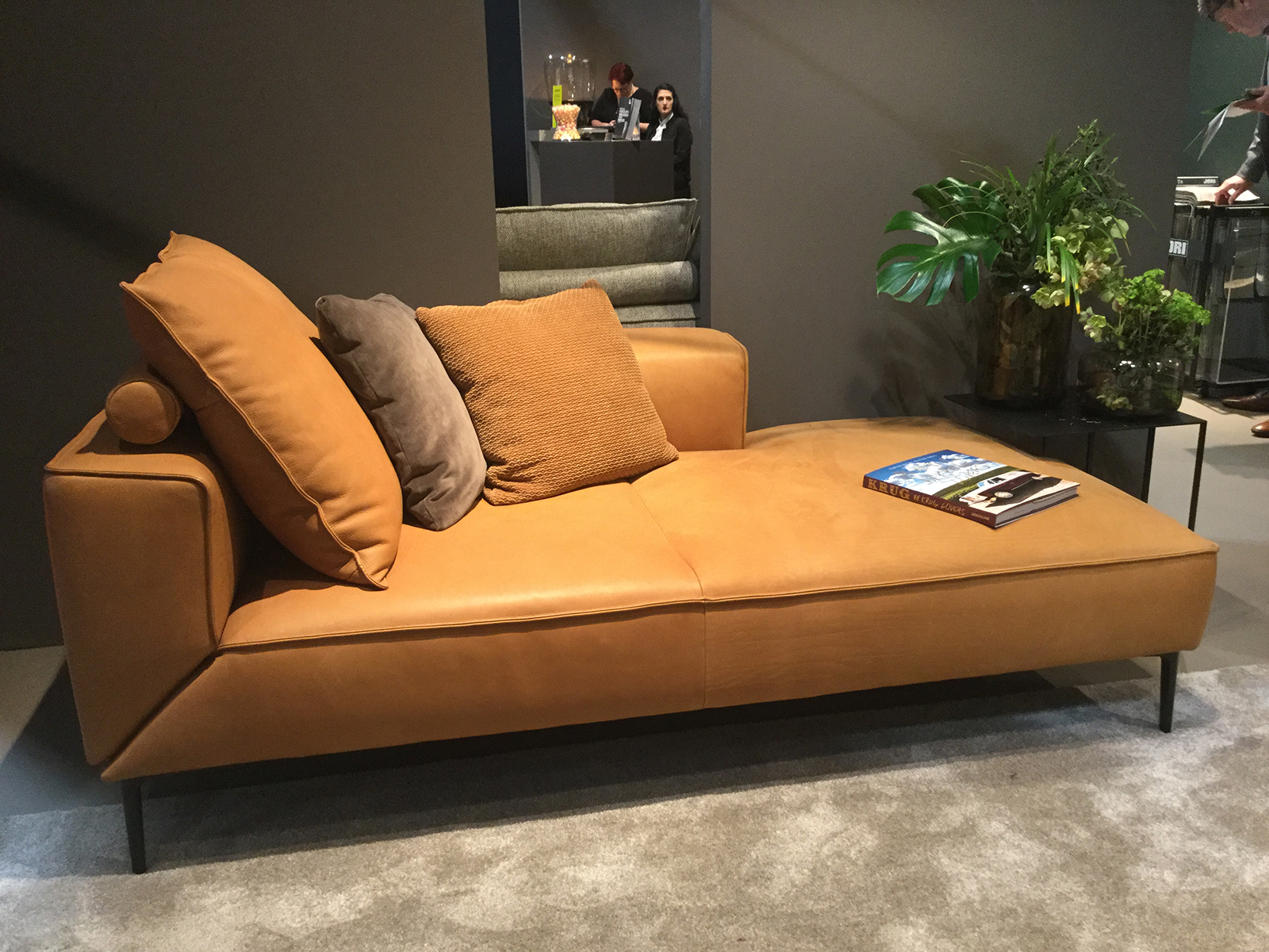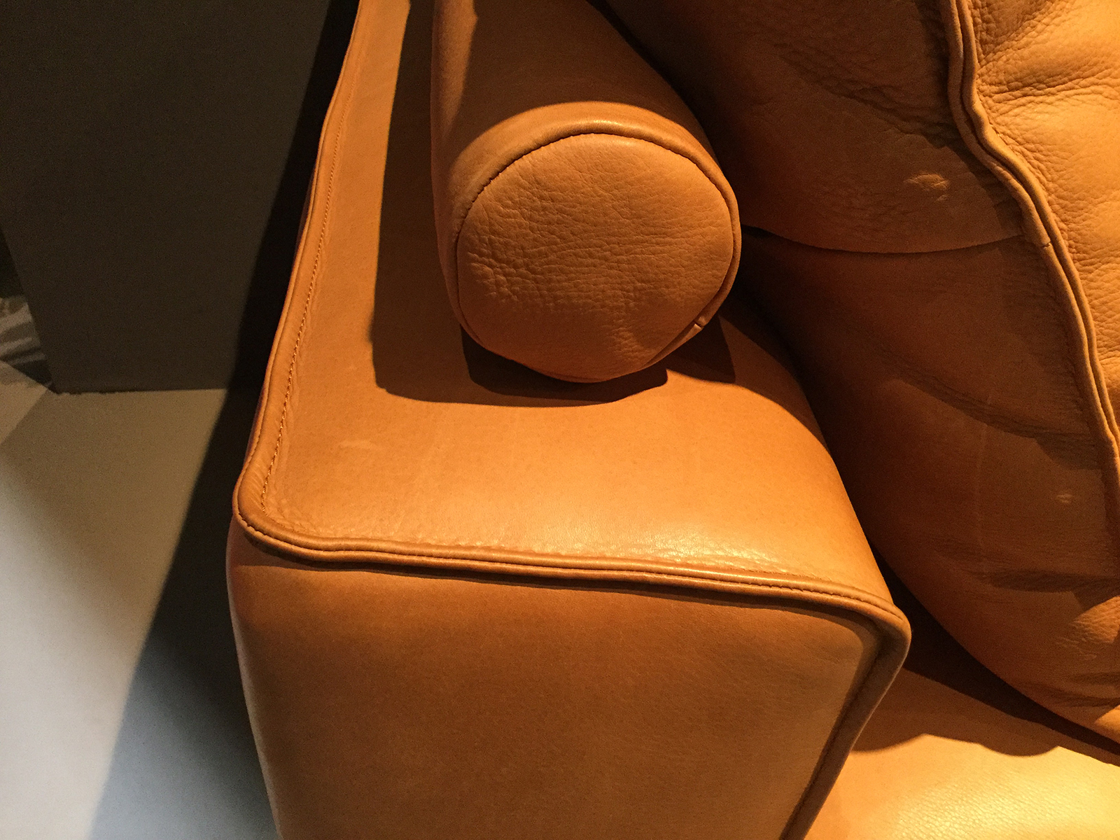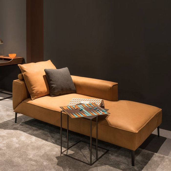 Кушетка Longueville Landscape с подушкой под спину размером 70 на 60 см (подлокотник слева). Кушетка и подушка выполнены в натуральной коже рыжего цвета (Lotila coffee). Для заказа доступны другие цвета.