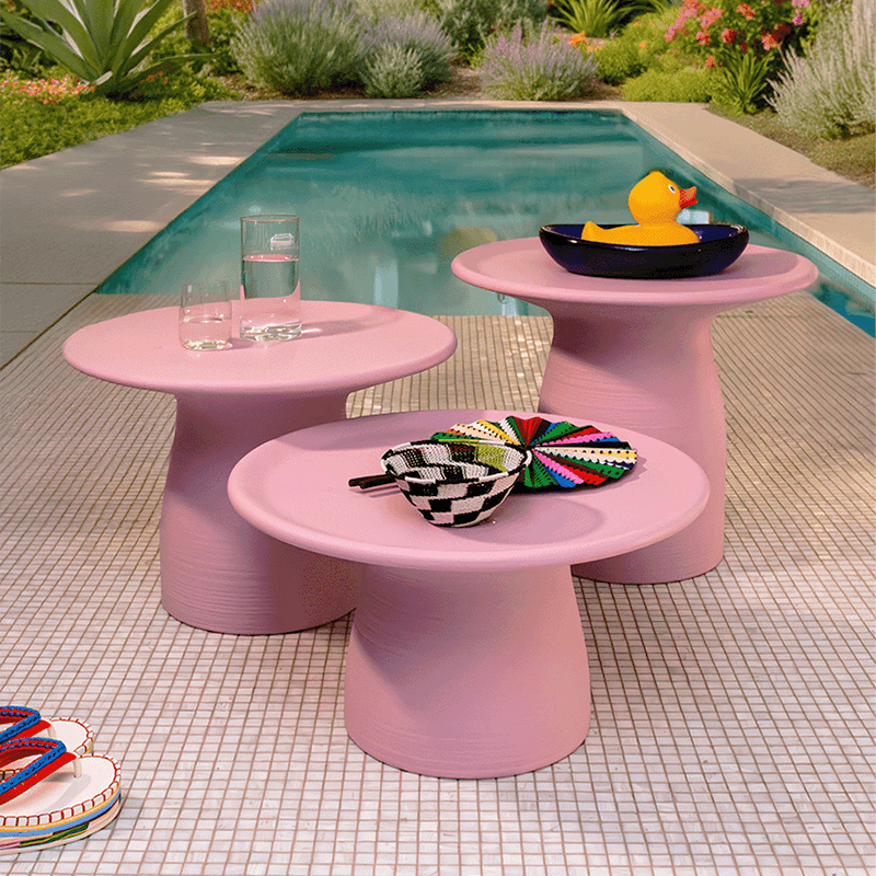 Totino — это набор из трех низких столиков, имеющих одинаковую конструкцию столешницы, но разную высоту, что позволяет использовать их как втроем, так и по отдельности.