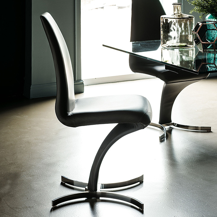 Мягкий стул со стальной рамой и чехлом из ткани, микронубука, натуральной или синтетической кожи согласно образцам. Матово-черное (OP17), графитовое (OP69), хромированное (08) или титановое (GFM11) тисненое лакированное стальное основание. Чехол не снимается.
