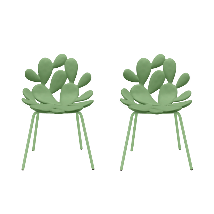 Стулья Filicudi поставляются сетом из двух штук и прекрасно подходят для использования не только на улице, но и в помещении (с возможностью штабелирования). Завидный выбор для ценителей комфорта, солнечной эстетики и флористических мотивов.