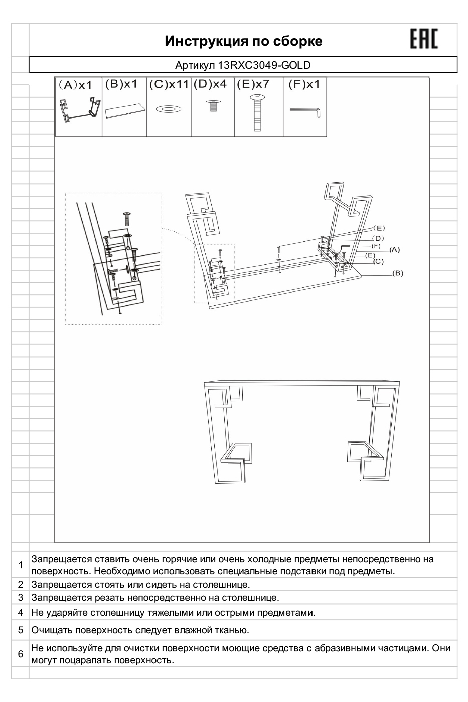 13RXC3049-GOLD Консоль, цвет золото 120*40*78см. Материал: нерж.сталь, стекло.