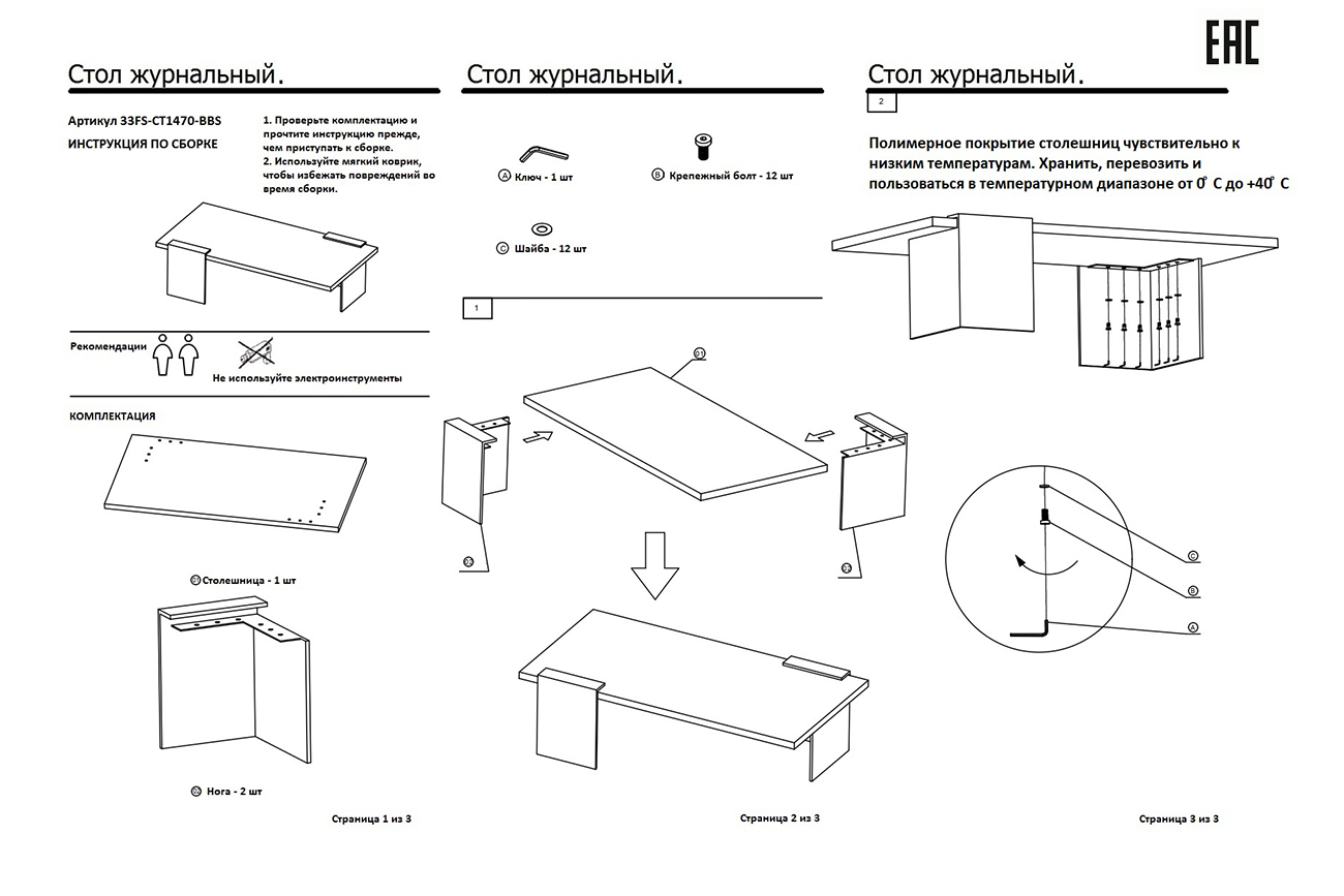 33FS-CT1470-BBS Стол журнальный Nero 140*70*40см. Материал: нерж.сталь, МДФ, пленка ПВХ..