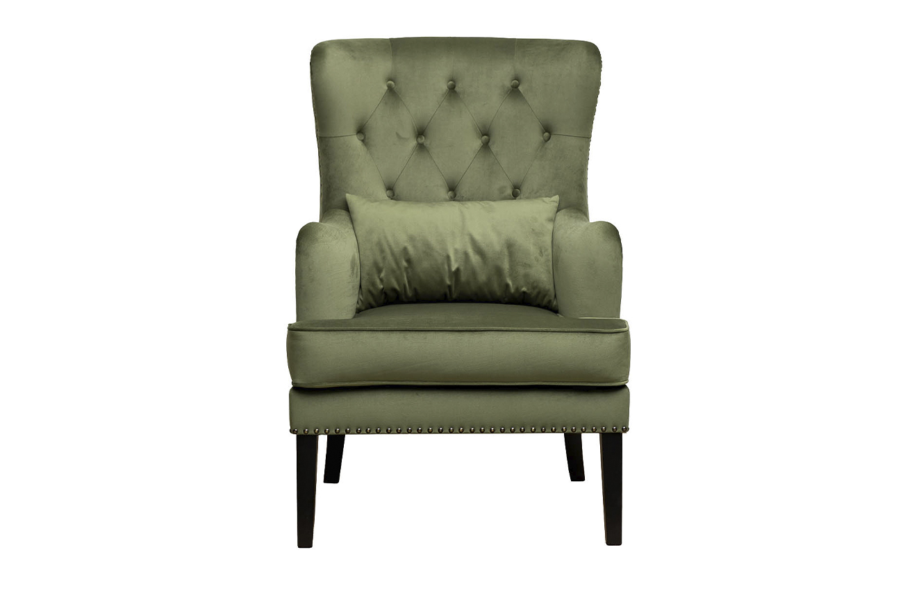 Кресло Rimini велюр зеленый Colton 008-ZEL 74*84*104см с подушкой. Материал: обивка - велюр, каркас и ножки - дерево.