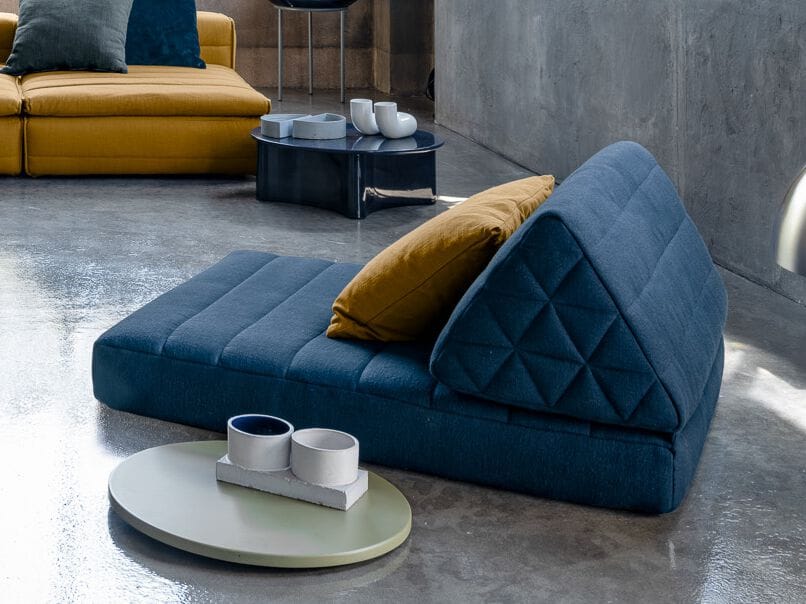 Геометричное мягкое сиденье-кушетка с объемной треугольной спинкой, пенополиуретановой обивкой и съёмным текстильным чехлом. Коллекция Samet предлагает многообразие комбинаций для создания мягкой мебели под конкретный запрос.