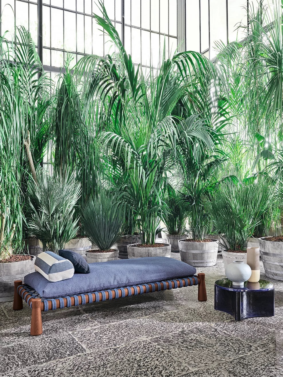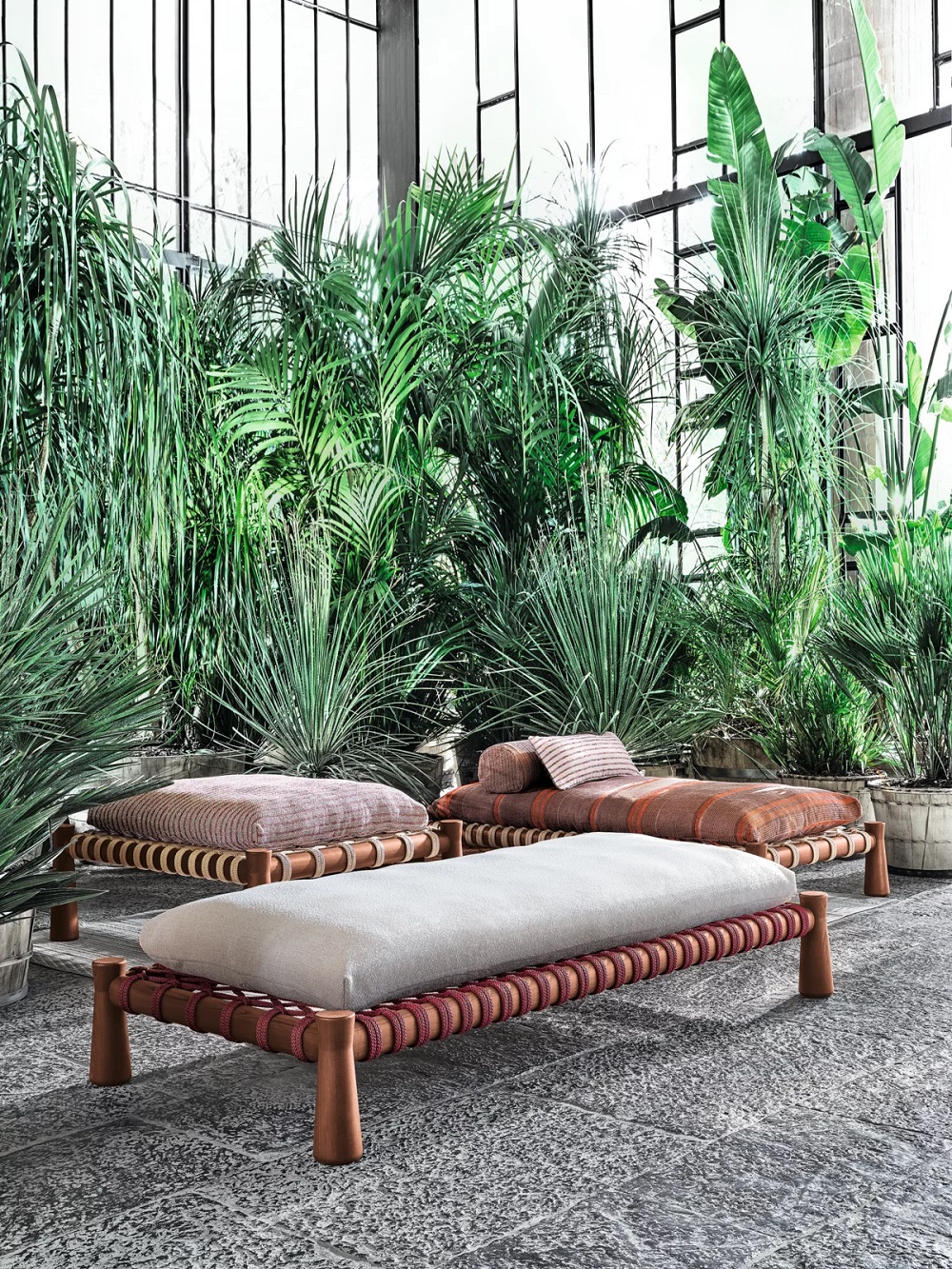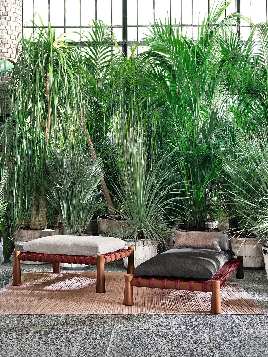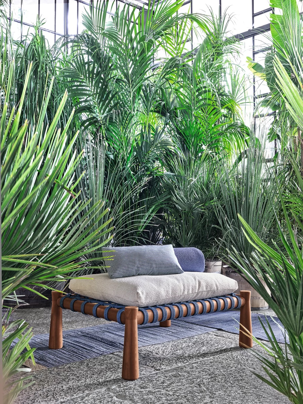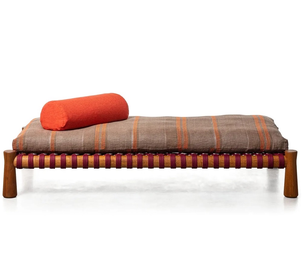 Чарпай, или веревочная софа, — традиционная индийская кровать, низкая и просторная, которая была переосмыслена молодым итальянским дизайнером Кьярой Андреатти и переведена в статус премиальной мягкой мебели для отдыха.
