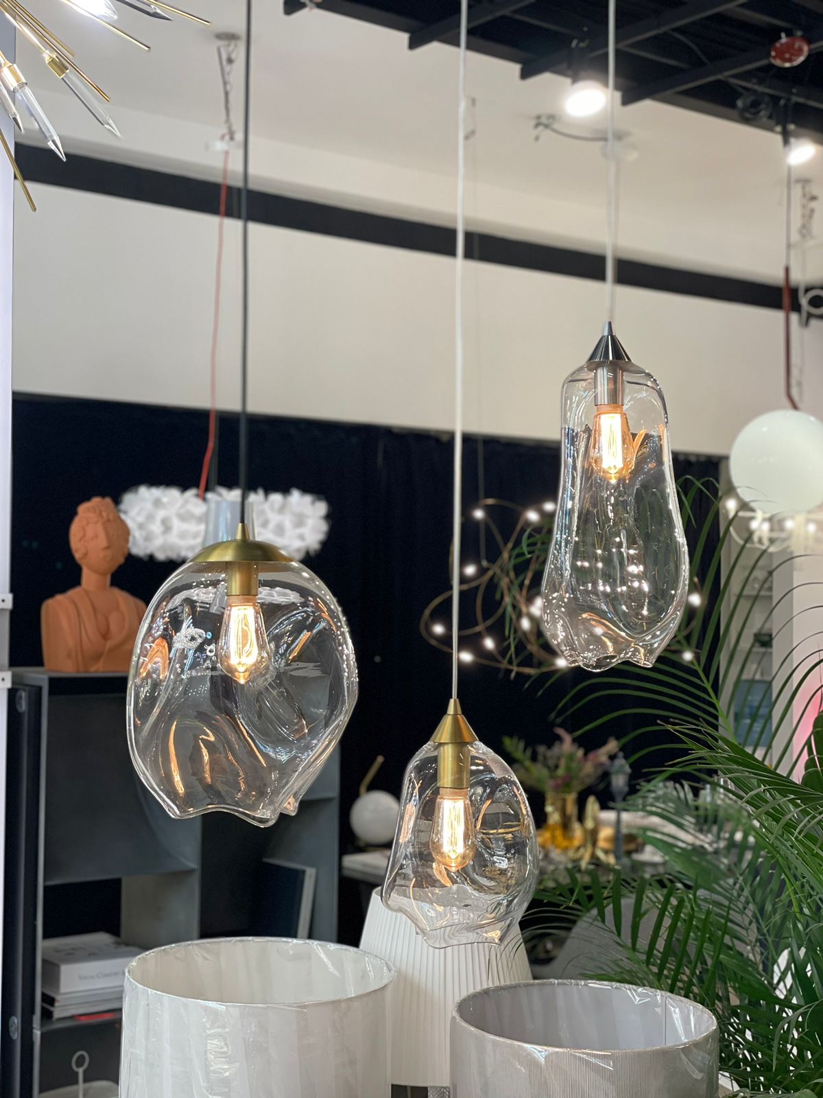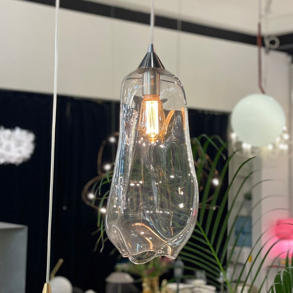 Подвесной светильник Tulip Long brass выполнен из стекла ручной работы. Фурнитура из сатинированной латуни, прозрачный провод.