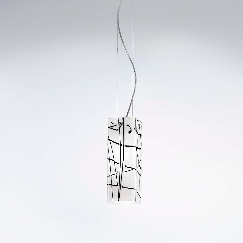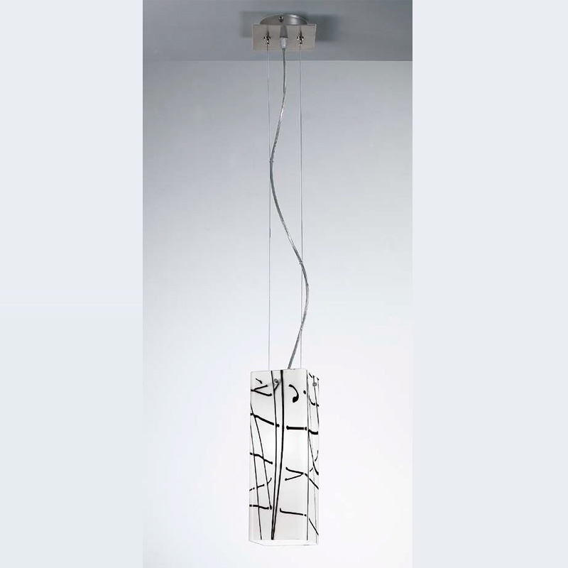 Подвесной светильник из коллекции Geisha на никелированной арматуре. Плафон выполнен из стекла. Цвет: белый с черными разводами. Высота светильника регулируется до 135 см. (Арт. L 106 22 3A A Lucerni)