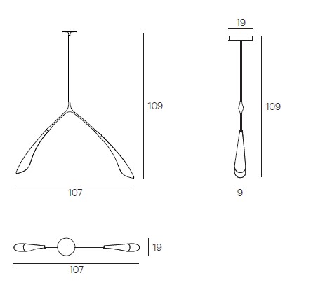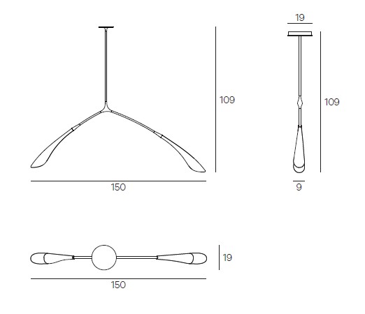 Подвесной светильник HENGE Maple с низким энергопотреблением с латунной структурой и центральным Y-образным корпусом из литой бронзы (или латуни), плафонами из стекла.