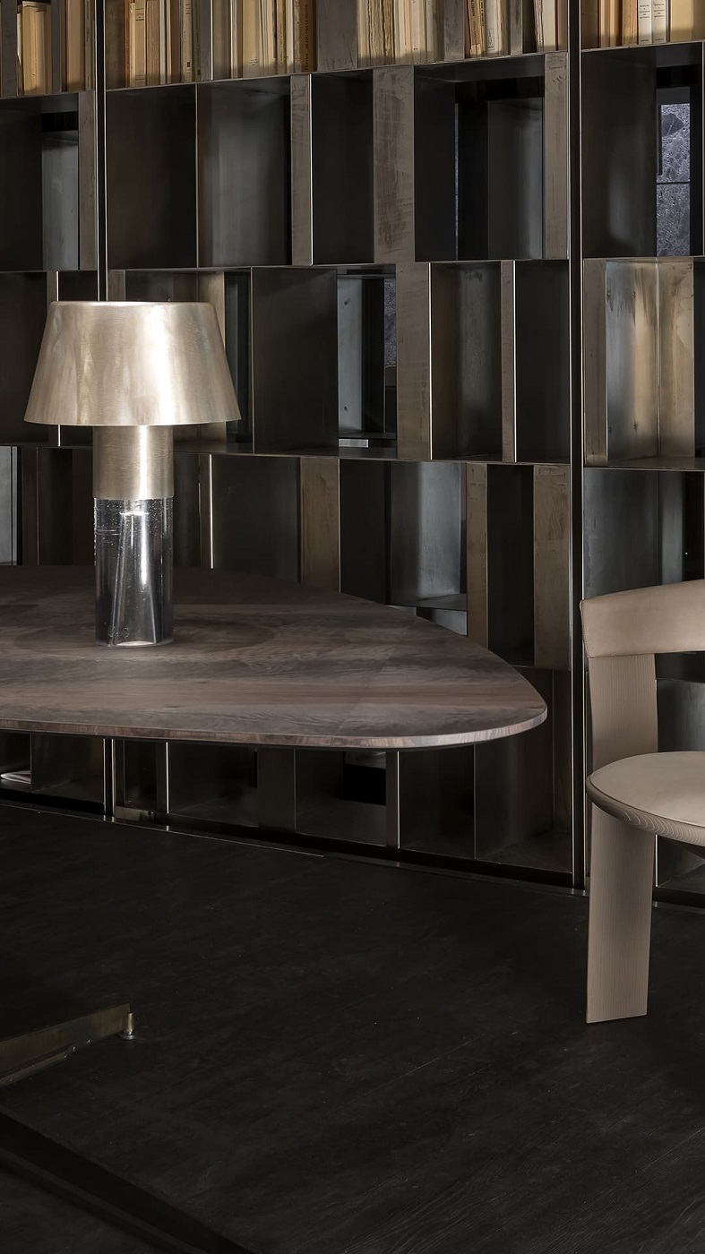 Cтол HENGE Gibson с основанием из металла и столешницей из дерева.