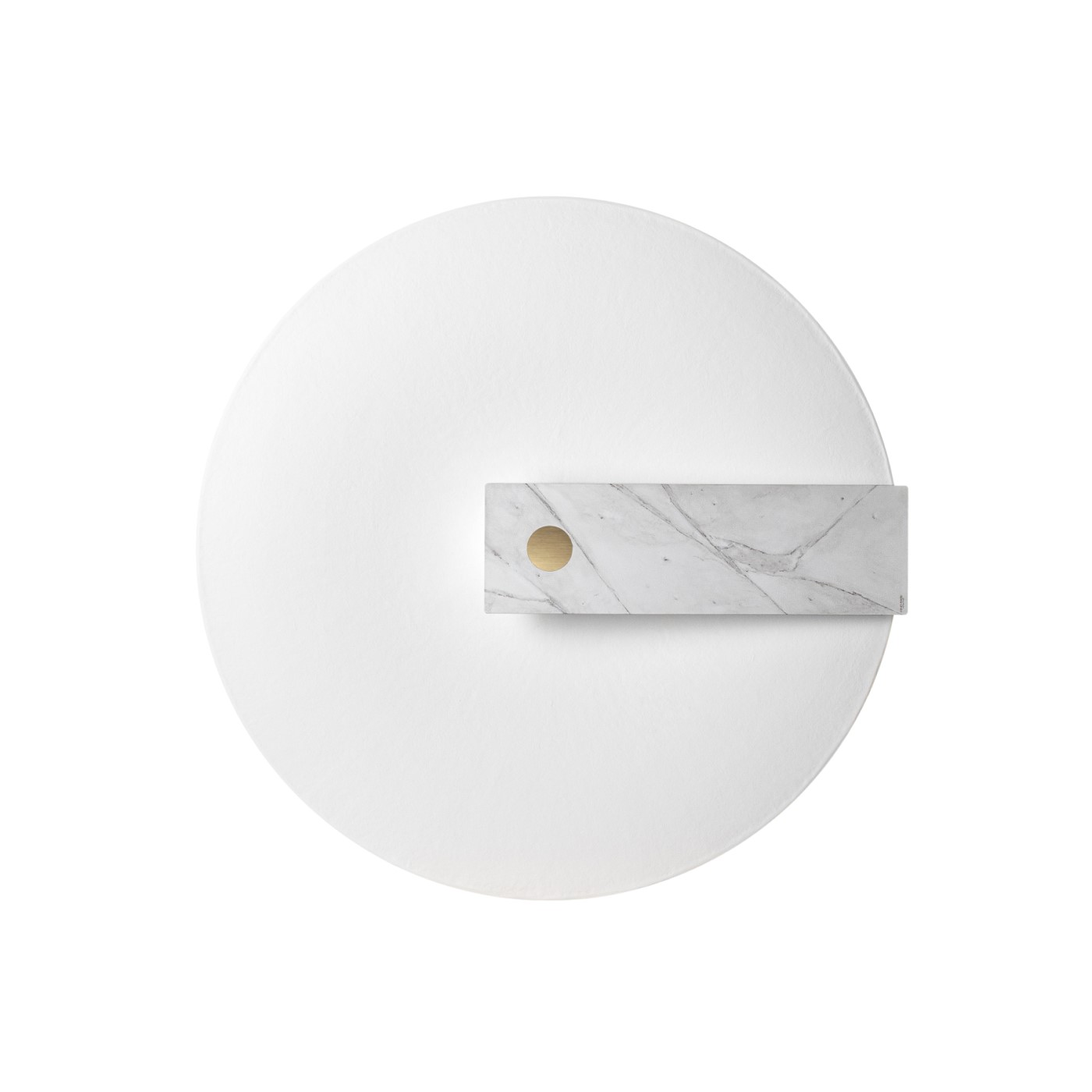 Настенный светильник Hind Rabii Meridiana S White изготовлен из стекловолокна белого матового цвета. Декоративный элемент из металла с отделкой под мрамор белого цвета.