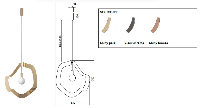 Эти подвесные светильники, словно драгоценности, парящие в воздухе, улавливают свет с изысканной элегантностью. Металл сияет золотом, глубоким чёрным хромом или неподвластной времени бронзой. Плавно паря, они излучают мягкое сияние, сочетая роскошь и таинственность, словно драгоценные камни, подвешенные в ночном небе.