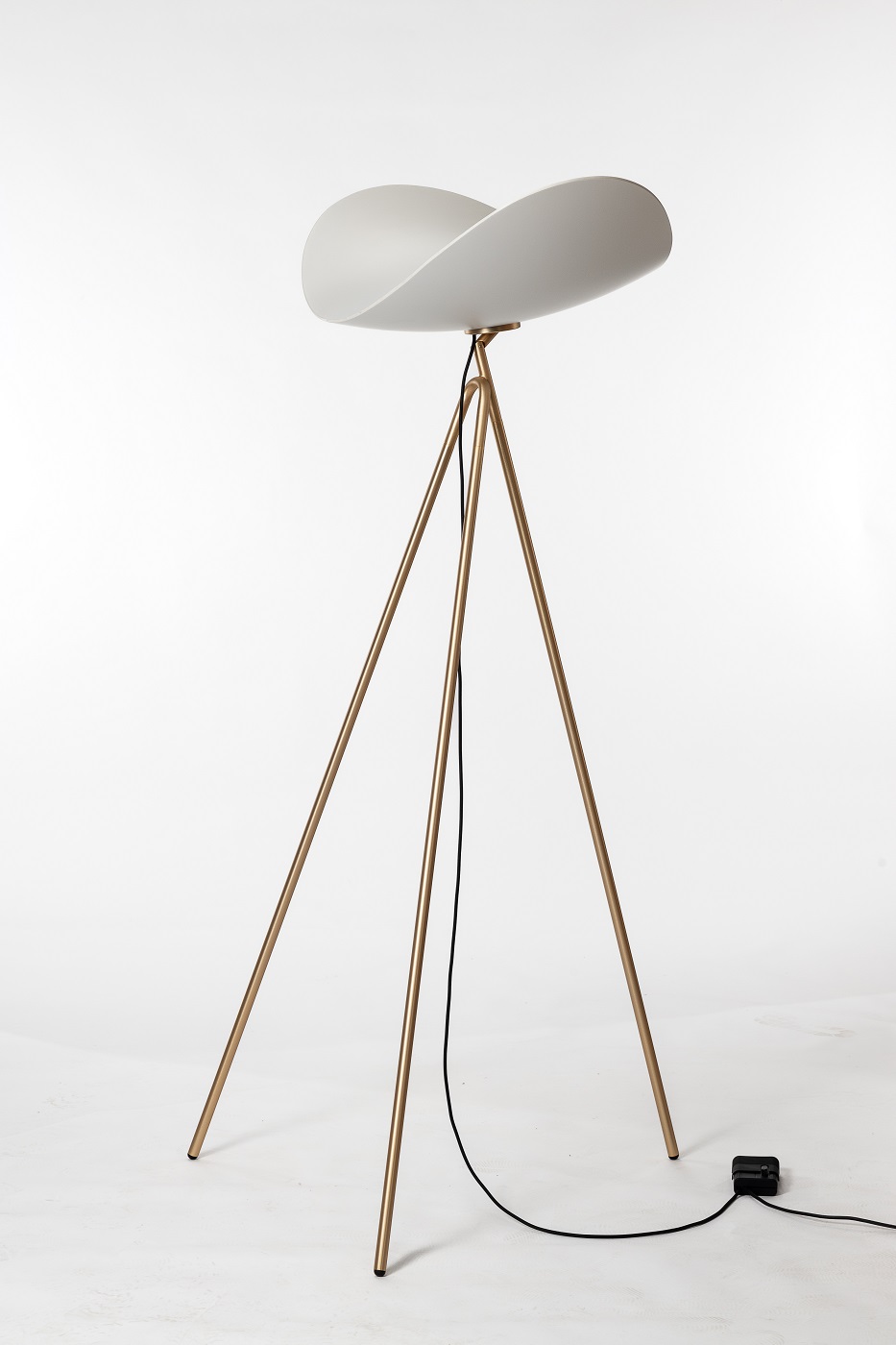 Торшер Hind Rabii Infinity Brass/Walnut gold изготовлен из стекловолокна с отделкой орех, арматура из металла латунного цвета.
