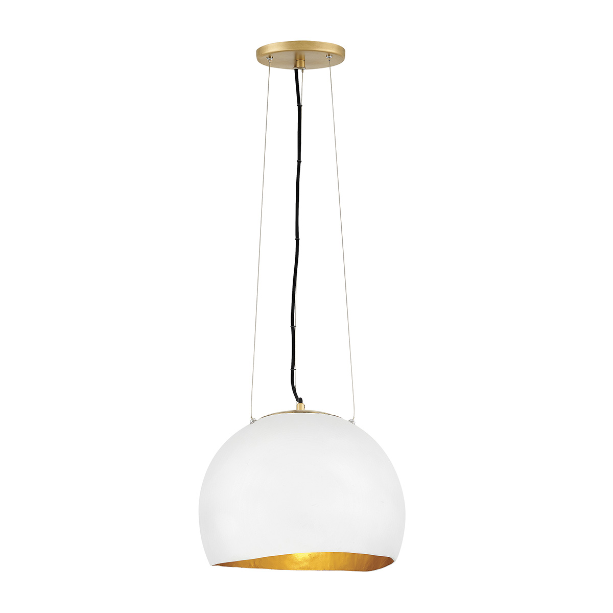 Подвесной светильник Elstead Lighting QN-NULA-1P. Настоящее произведение искусства. Соединение индустриальных и природных элементов, строгая простота форм отсылают к стилю «декаданс». С первого взгляда поражает сочетание насыщенной матово-белой внешней поверхности с внутренней частью, сияющей роскошным золотом. Основание в цветах - Белый, Золото. Подходит для освещения гостинной, кабинета, кухни, прихожей, спальни, столовой. Поставляется с поддерживающим проводом длиной 3048 мм
