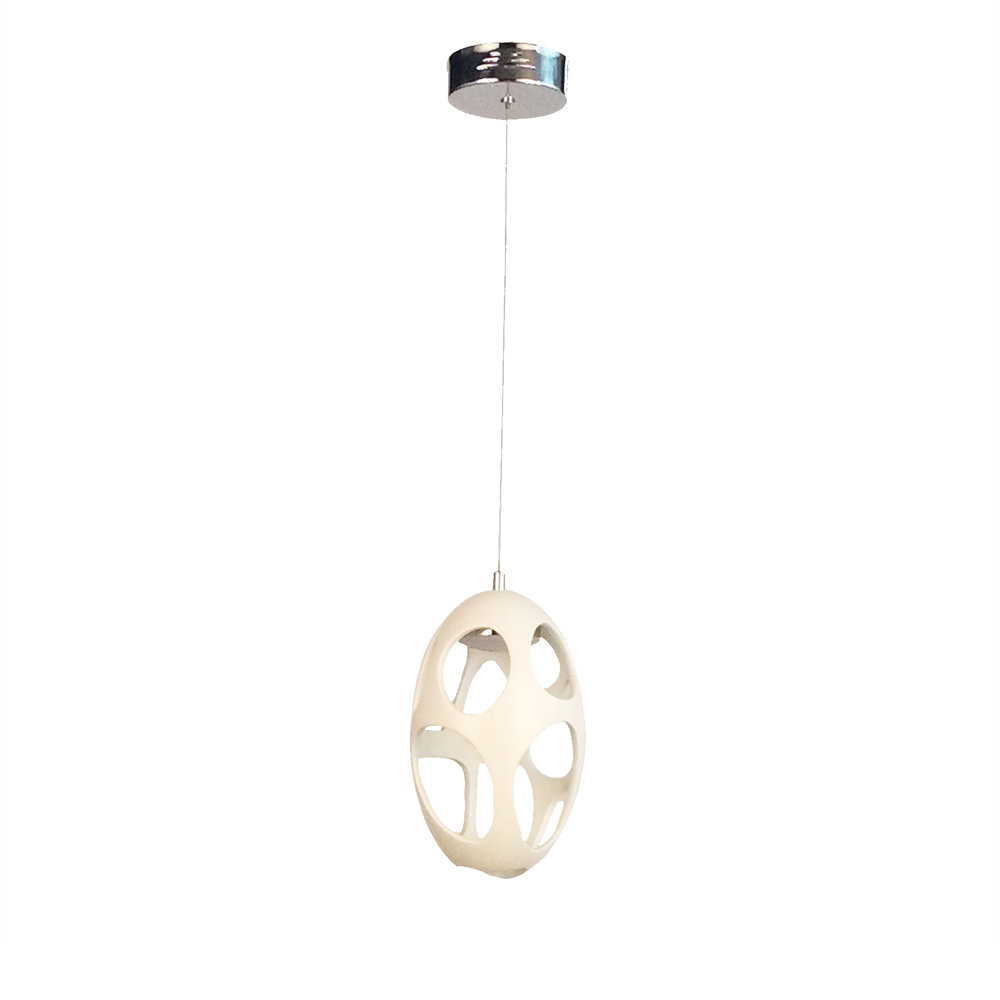 Подвесной светильник с оригинальным плафоном из металла белого цвета. Потолочное крепление хромированное.