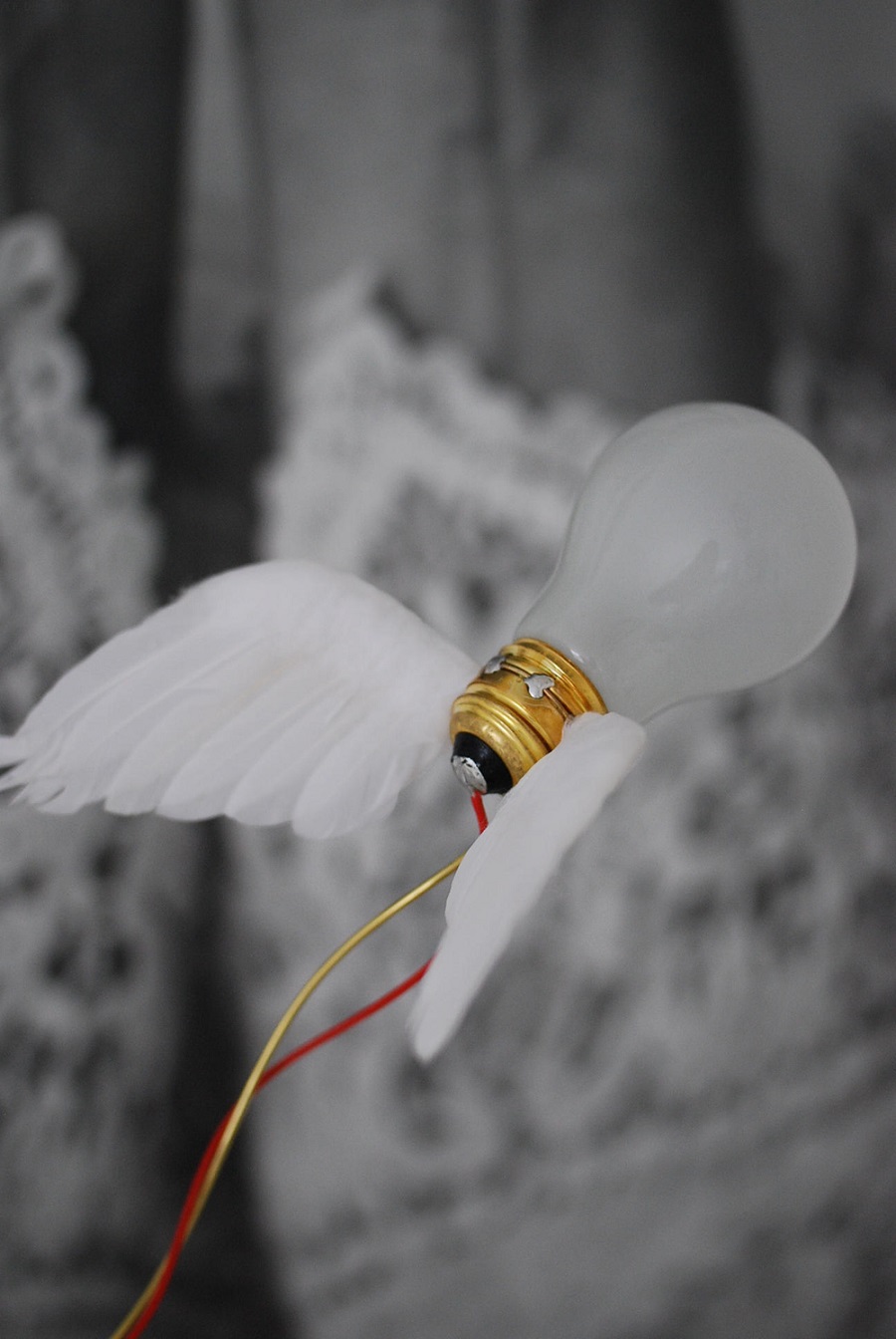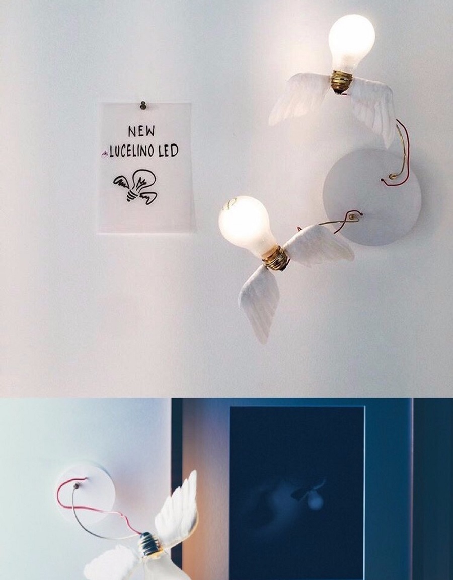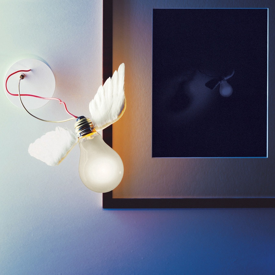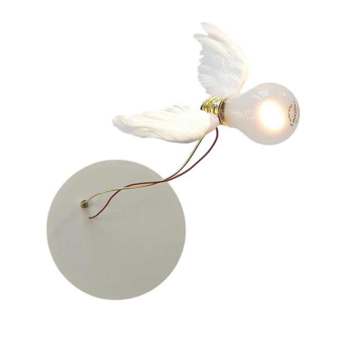 Накладной светильник Lucellino NT — это живое изящное воплощение полета: светодиодный матовый источник рассеянного света украшен созданными вручную крыльями из гусиных перьев и посажен на тонкие проволочные крепления. Лампочки для проекта были созданы специально по заказу Инго Маурера. Неповторимый дизайн с вниманием к функциональности и визуалу.