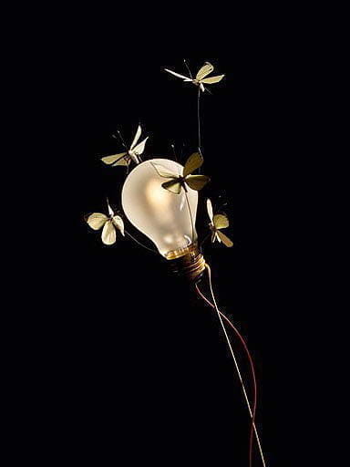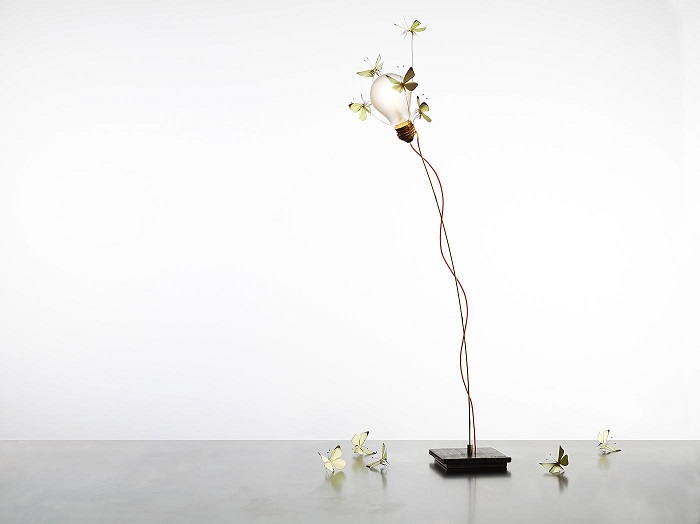 Пять прекрасных бабочек-капустниц привлечены светом лампы, создавая невероятно живую атмосферу теплого летнего вечера на свежем воздухе. Настольная лампа на тонком слегка изогнутом металлическом стебле оснащена матовым источником света Ambient 12V AC, специально созданным для Инго Маурера. Функция dim-to-warm 2000-2700K позволяет плавно менять цветовую температуру от холодного белого оттенка до тёплого жёлтого за счет снижения яркости светодиодов.