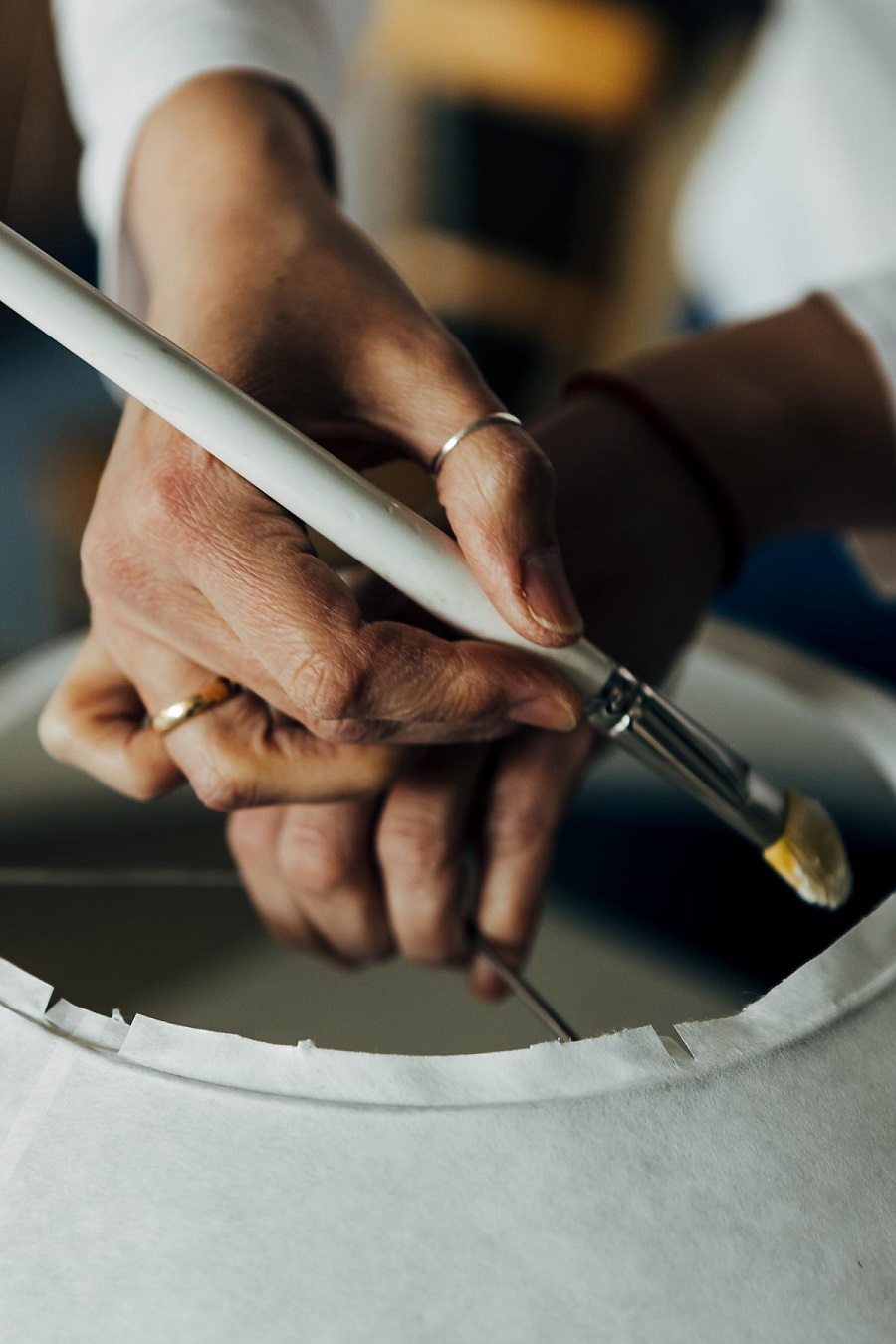 Дуэт японской бумаги и металла, хрупкости и стабильности стал вдохновением для Инго Маурера, который в конце 1970-х – начале 1980-х начал работать над минималистичной серией ламп по восточным мотивам. Используя форму традиционных абажуров, автор формулирует новую эстетику и актуальный облик лампы, который с тех пор глубоко полюбился аудитории. Абажуры изготавливаются вручную на производстве в Мюнхене. Бумага создаёт мягкий, совершенно безбликовый свет: фактурная и шероховатая, она добавляет композиции элемент спонтанности и свободы.