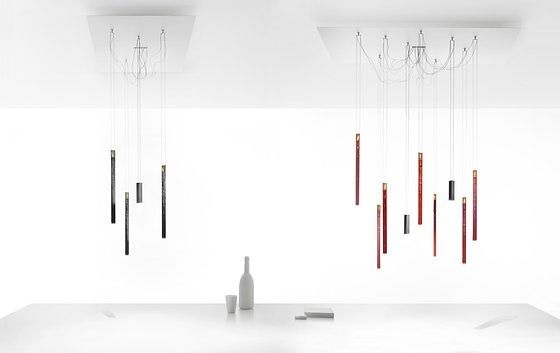 Элементы Fyling Flames комбинируются в разных сочетаниях и подвешиваются с помощью магнитов к потолочной пластине, которая вмещает до десяти «свечей» и до трех даунлайтов. Это простор для индивидуальных сюжетов с выбором желаемого количества и цветов элементов. Яркость даунлайта регулируется встроенным сенсорным диммером, а интенсивность/скорость пламени «свечи» меняется кнопкой на плате.