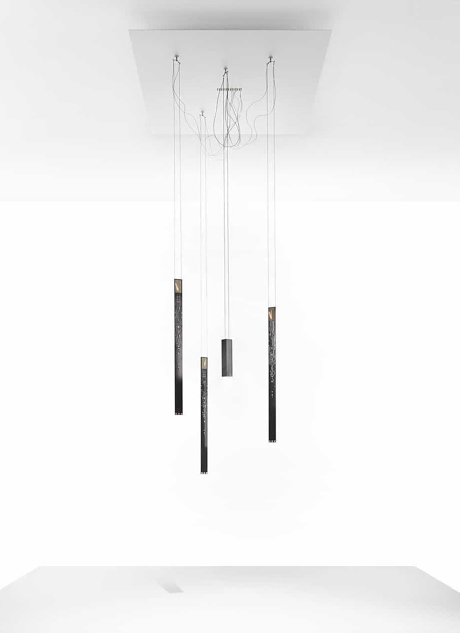 Подвесной светильник серии Flames — настоящая находка для любителей кастомного подхода к освещению. В комбинации с даунлайтом, они создают прекрасную светодиодную пару (а то и несколько) под названием «Flying Flames» — известный светотехнический проект, который разработали в 2012-м году Мориц Вальдемейер и Инго Маурер.