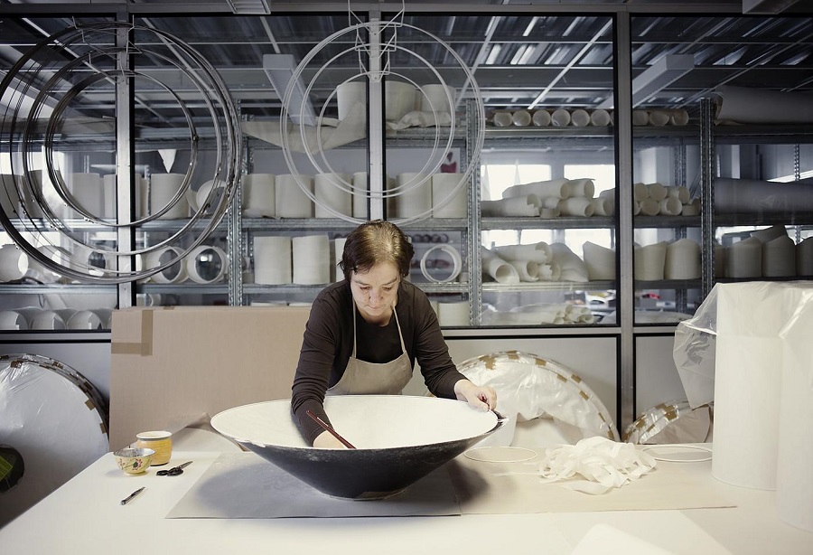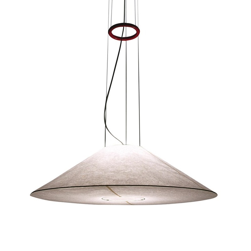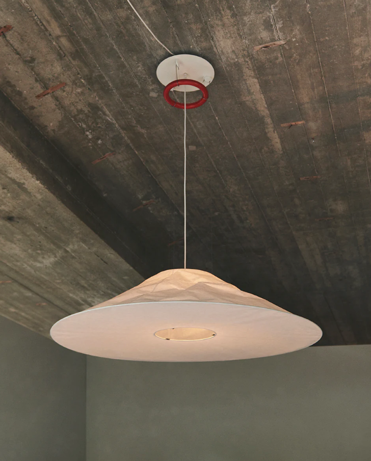 Гармонично сложенный подвесной светильник с широким коническим абажуром из японской бумаги удерживается тремя тонкими металлическими тросами. Очаровательный и смелый конкурент в выборе нетрадиционных светотехнических форм. Благодаря прочности, гибкости и экологичности, Maru займет достойное место в любом пространстве, даря эстетику Востока и мягкий свет.