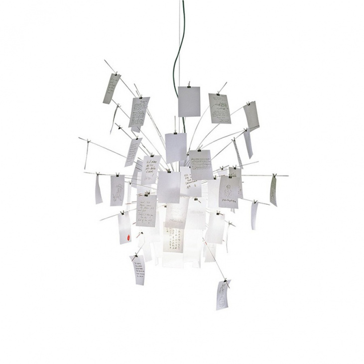 Нержавеющая сталь, термостойкое сатинированное стекло, японская бумага — идеальное сочетание надежных эстетичных материалов, сложенных в изящном подвесном светильнике Zettel'z 5. Всего в композиции 40 заполненных листов и 40 чистых листов формата A6 (и это повод для креативного подхода к декору собственного пространства!).