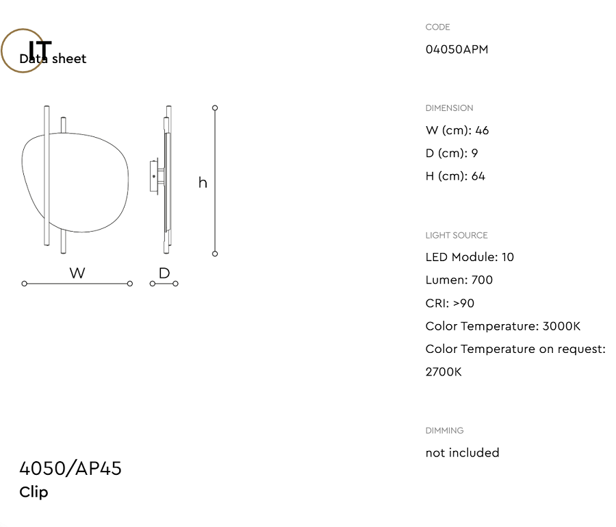Настенный светильник Clip воплощает артистичный подход к освещению и чувственно-романтичный стиль, актуальный в современном освещении. Цветовой и геометричный контраст стекла с металлом передает особую интерьерную эстетику.