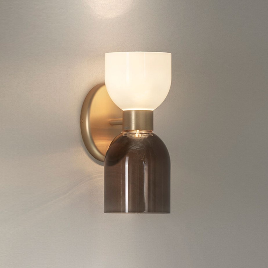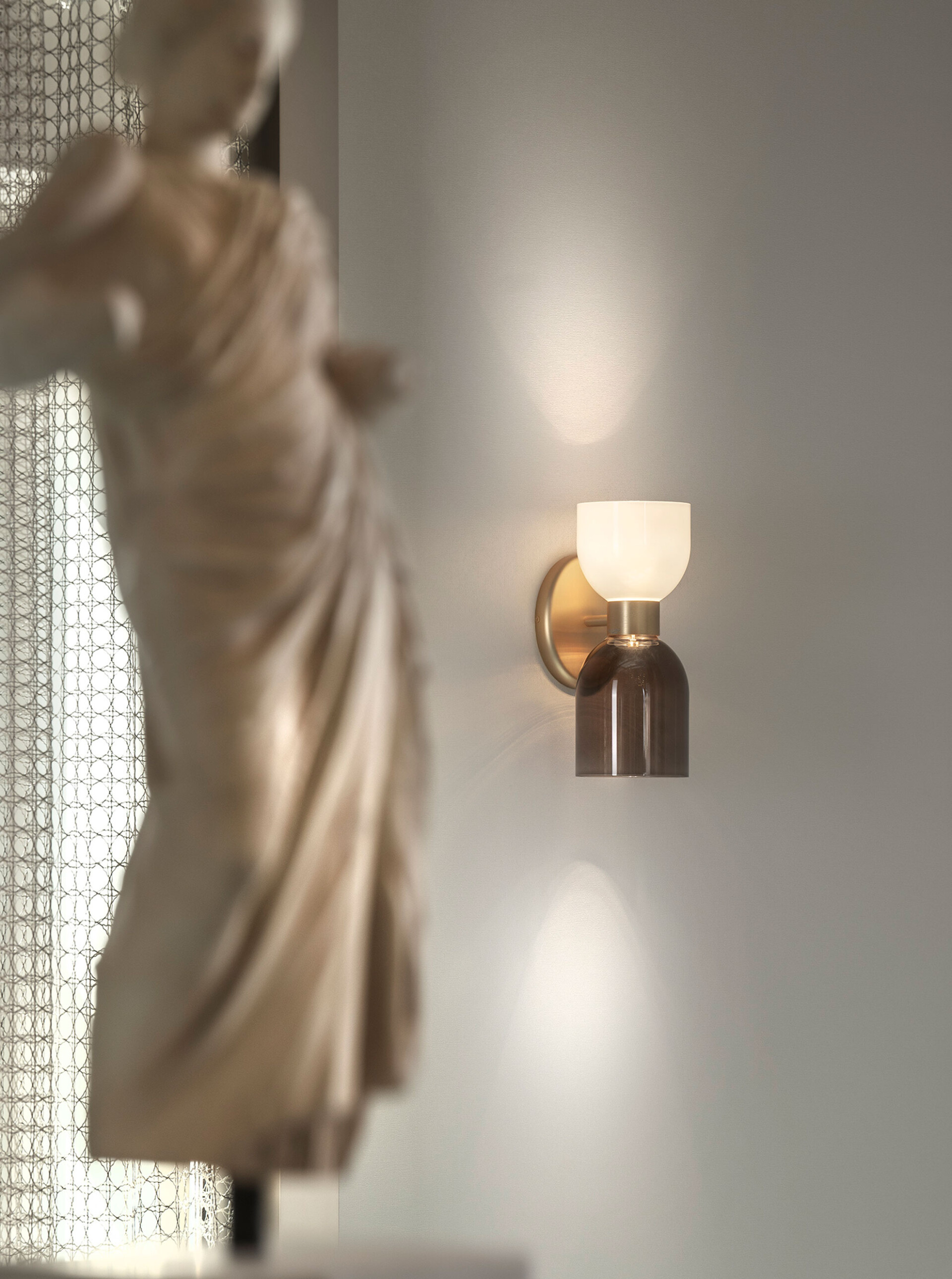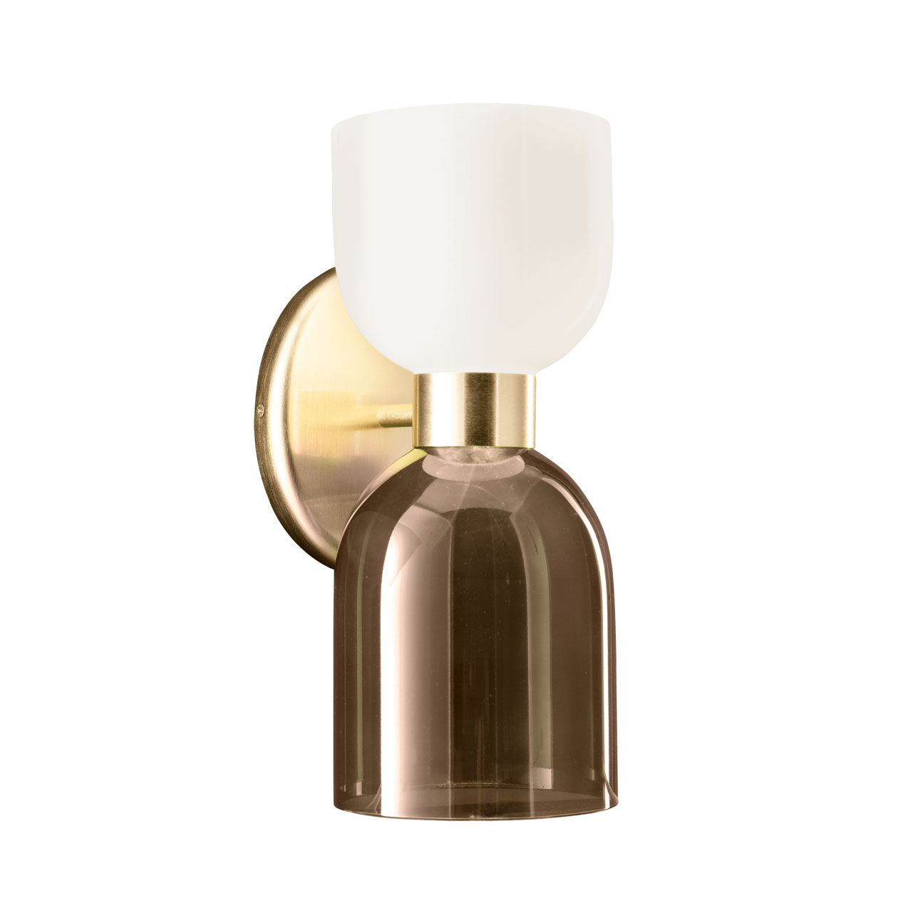 Настенный светильник Italamp Caterina 4026/AP2 Agatha из металла с отделкой матовое золото и рассеивателями из белого и агатового стекла.