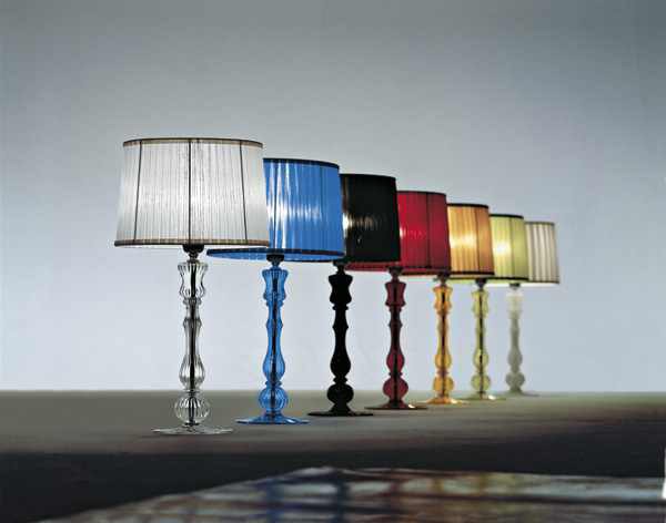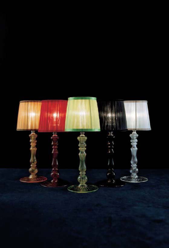 Настольная лампа в современном стиле. основание лампы из стекла прозрачного цвета (возможно много вариантов цвета стекла). Абажур из плиссированной ткани белого цвета. Возможны разные варианты цвета абажура (под цвет стекла).