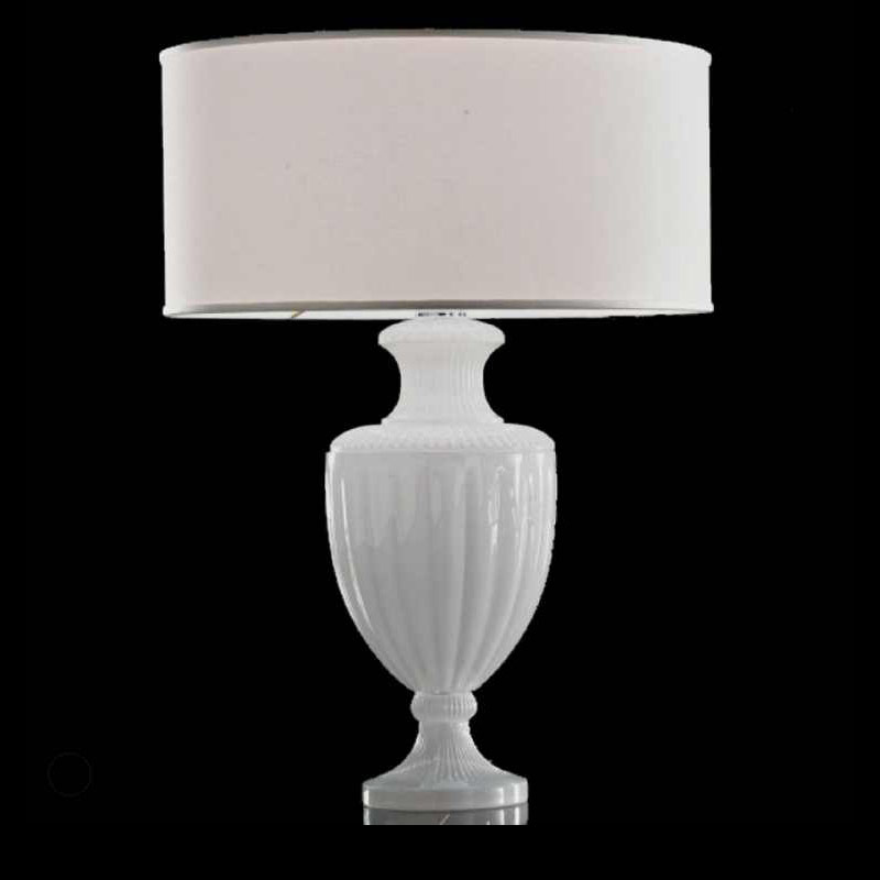 Настольная лампа выполнена в классическом цветовом решении. Основание в виде рельефной фигуры из белого муранского стекла. Арматура из металла, с отделкой цвета хром. Цилиндрический абажур из белой ткани. Степень защиты IP 20.