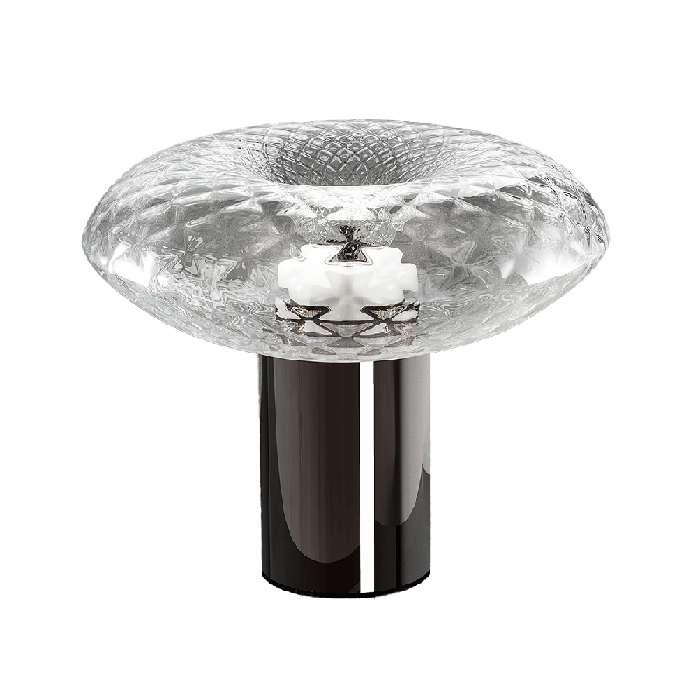 Стоимость указана за настольную лампу Cicla 203/LG Iron Grey / Transparent с серо-железным основанием и прозрачным абажуром. Также доступны варианты с абажуром белого и дымчатого стекла, с хромированным металлическим основанием.