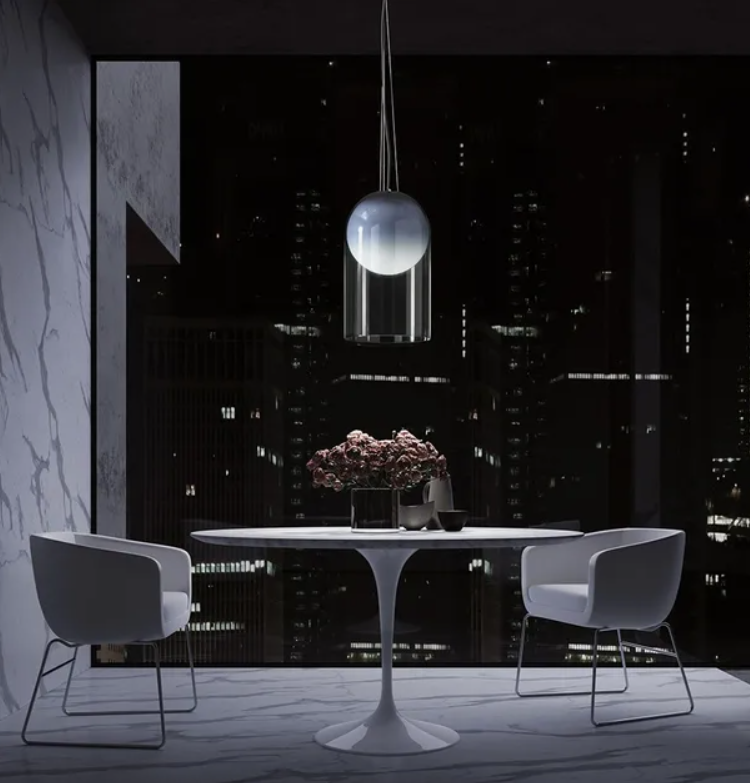 Магия лунного света — квинтэссенция концепции Muna: круглый рассеиватель из белого выдувного стекла с хрустальными фрагментами передает сходство с лунной поверхностью, а внешний рифленый купол с легкой тонировкой защищает Луну, делая свет уютным и атмосферным.